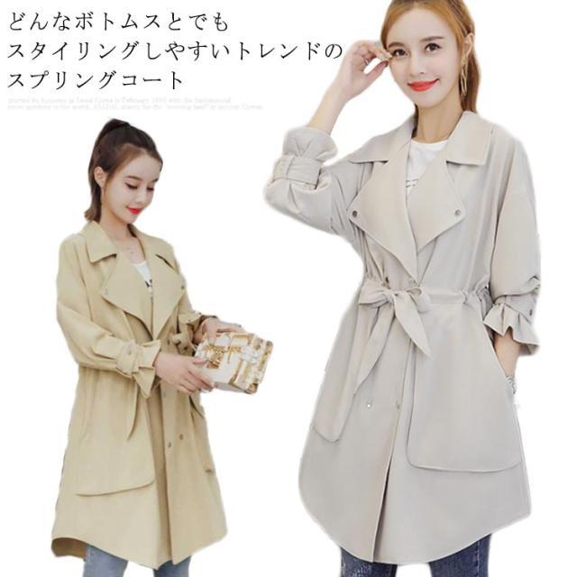 スプリングコート レディース トレンチコート ロングコート コートアウター 春コート 長袖 春物 春服 トレンド お洒落 かわいい カジュアル シンプル 春新作