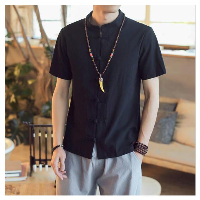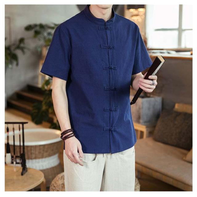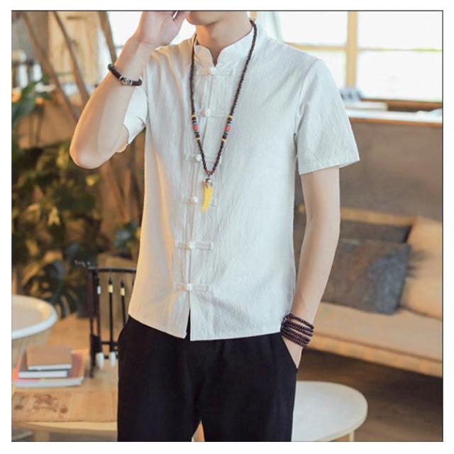 Tシャツ 半袖 メンズ トップス チャイナボタン 前開き シャツ リネンシャツ 綿麻 無地 チャイナ服 チャイナ風 中華服 中華風 薄手 チャイナスタイル 大きいサイズ カジュアルシャツ お洒落 おしゃれ 夏 送料無料