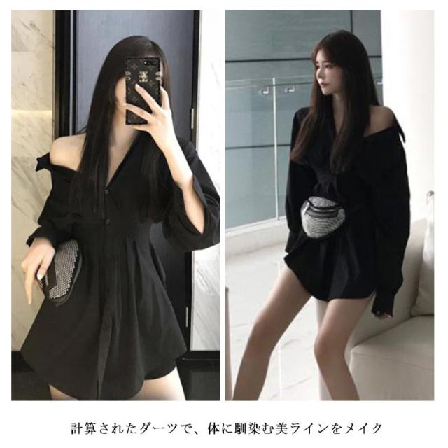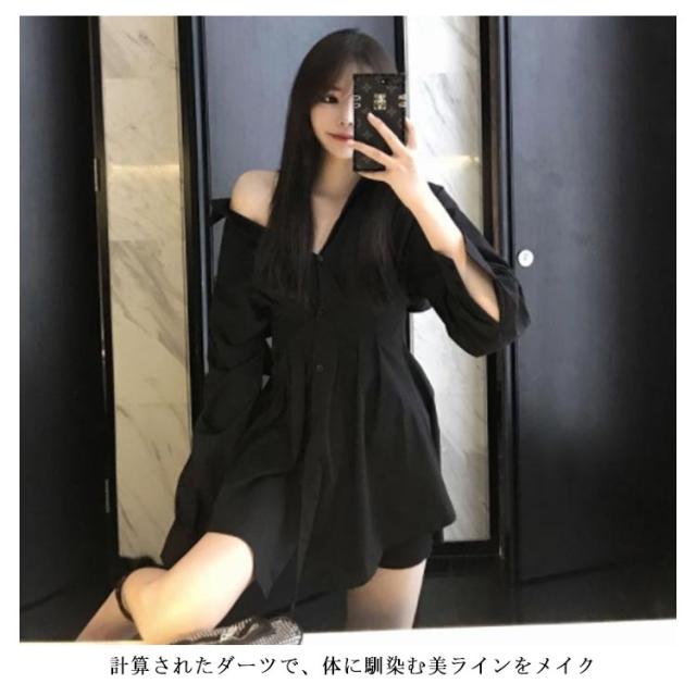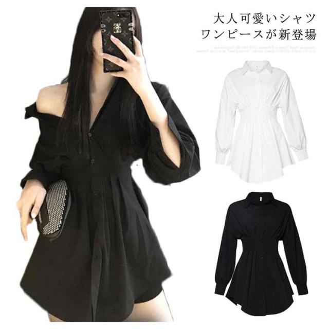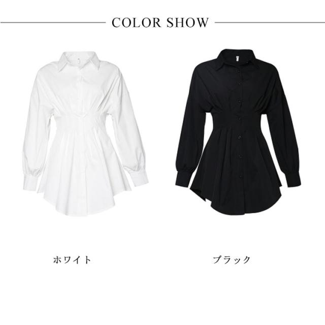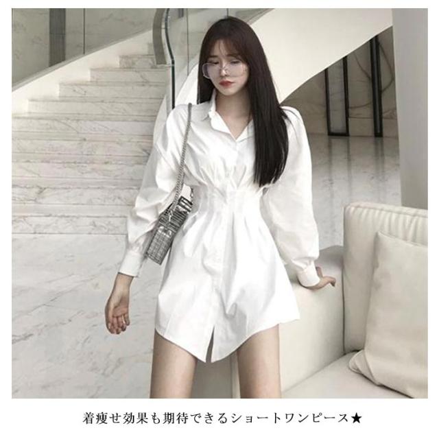 シャツワンピース レディース ワンピース ミニワンピース ショートワンピース 長袖 ボリュームスリーブ シャーリング 前開き ロングシャツ シャツブラウス 2WAY お洒落 大人可愛い 春秋 春新作
