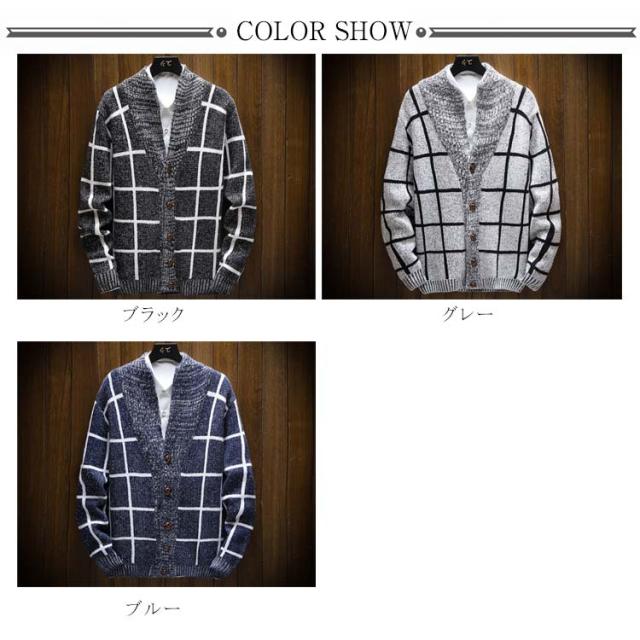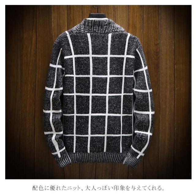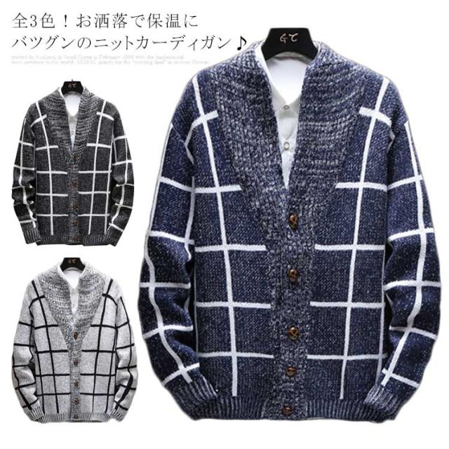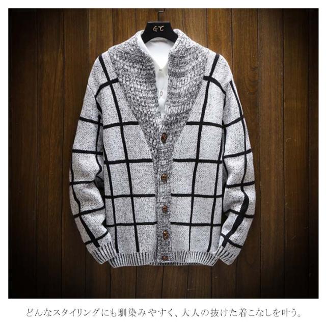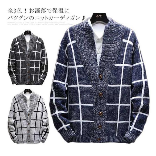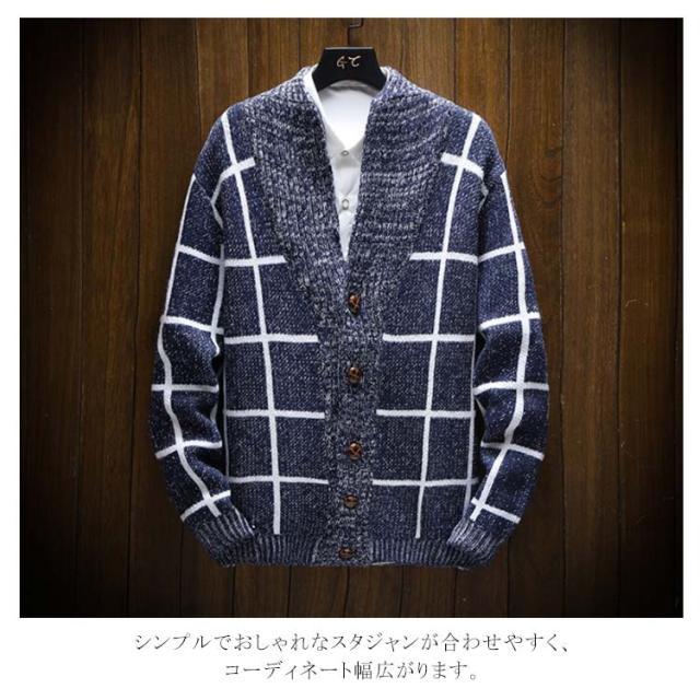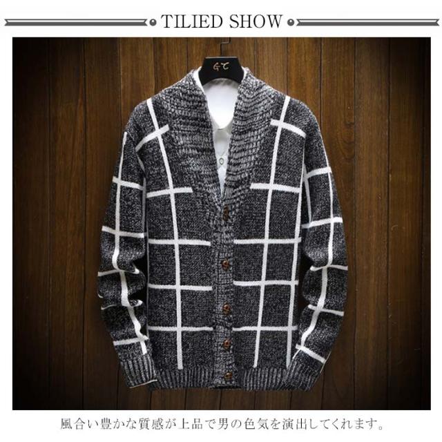 カーディガン ニットカーディガン アウター メンズ チェック柄 長袖 配色 ボダン付き 大きいサイズ 着痩せ お洒落 春秋