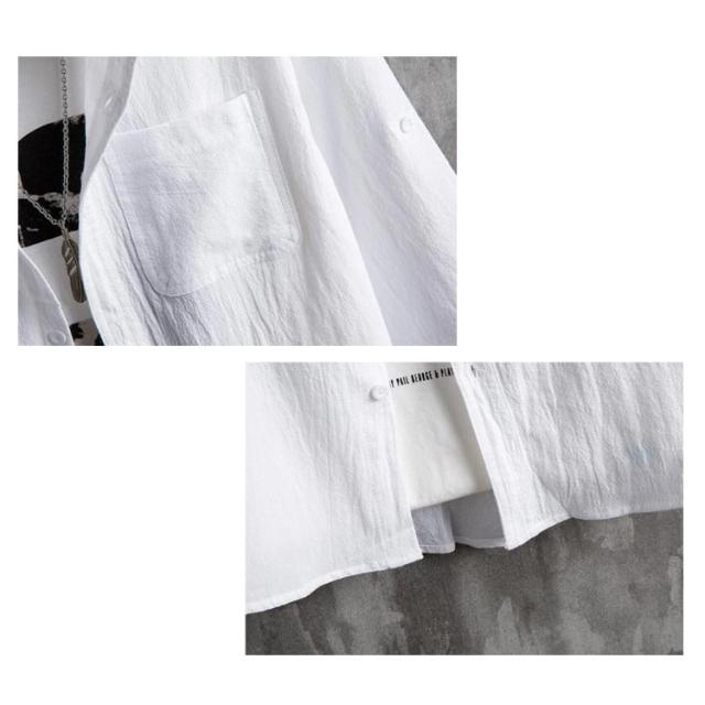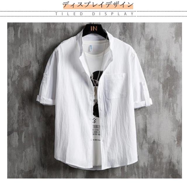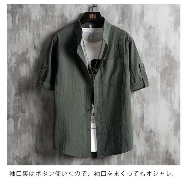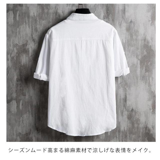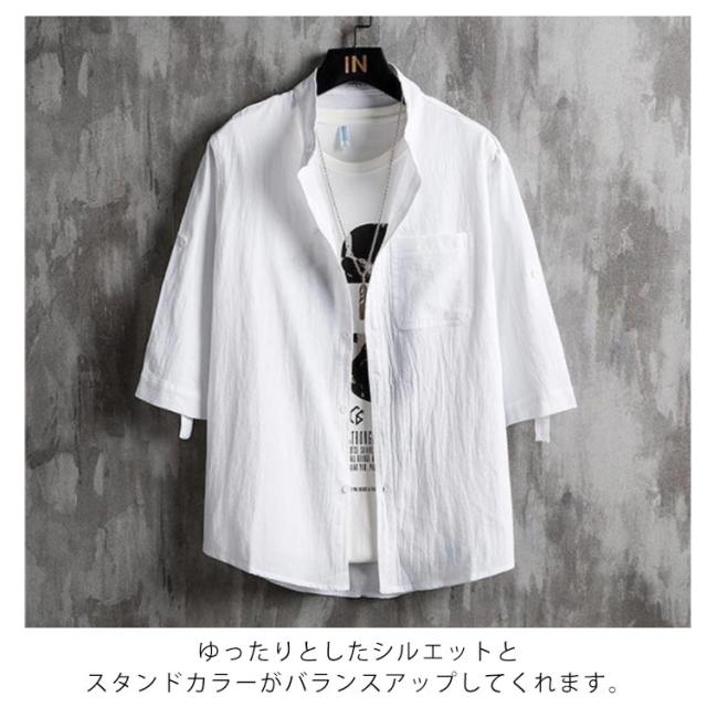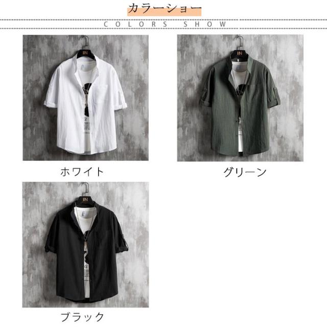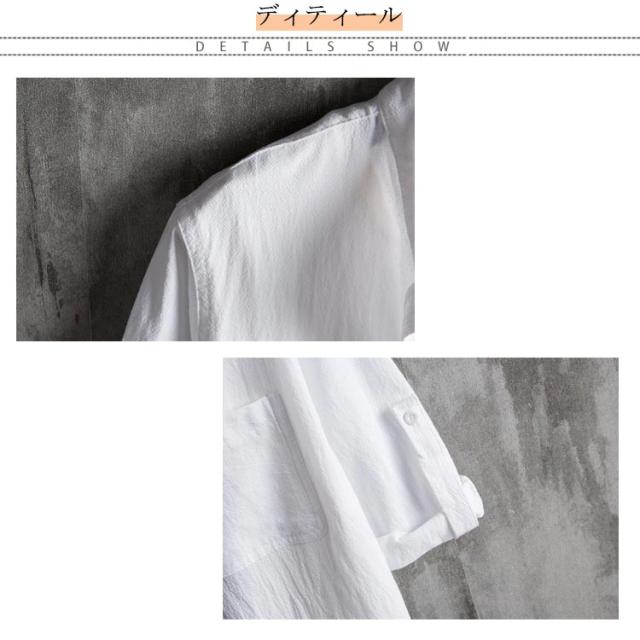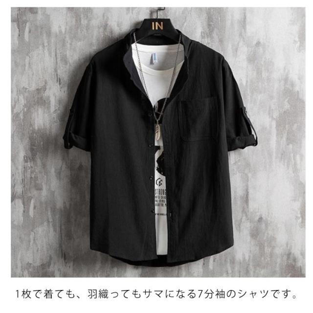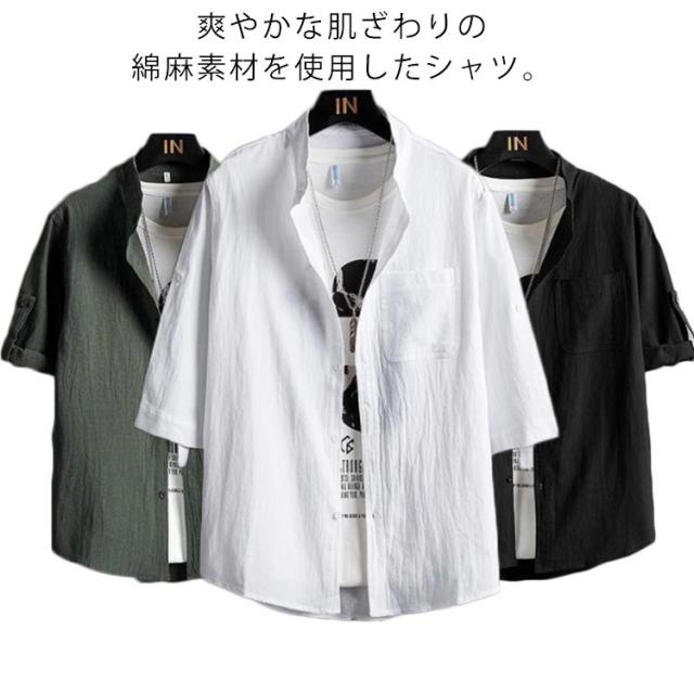 シャツ メンズ カジュアルシャツ 7分袖 綿麻シャツ リネン混シャツ 麻混シャツ スタンドカラー 立ち襟 バンドカラー トップス アウター 羽織り ロールアップ 薄手 ゆったり 大きいサイズ 冷房対策 紫外線対策 ナチュラル 無地 シンプル カジュアル 春夏 父の日 送料無料