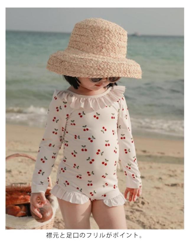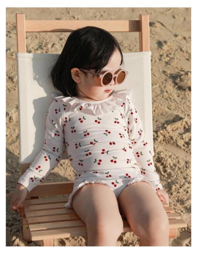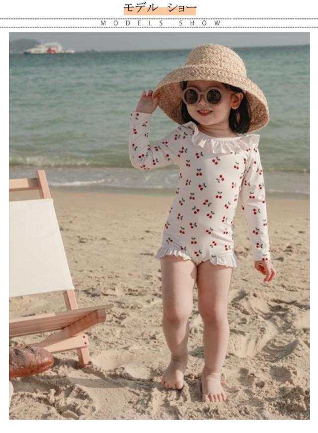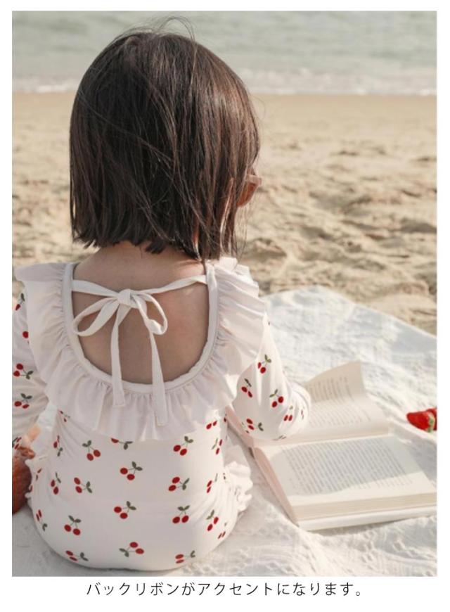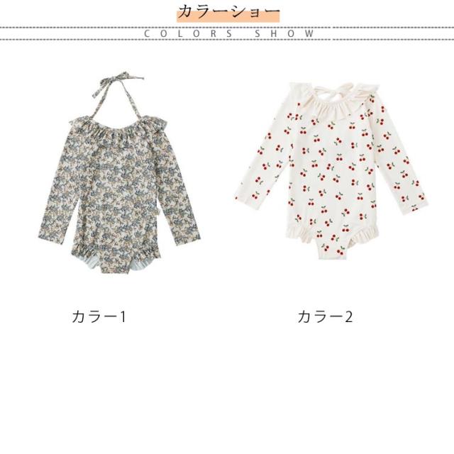 水着 女の子 ベビー水着 子供 幼児 ワンピース 水着 総柄 長袖 子供水着 フリル バックリボン キッズ水着 子ども こども スイムウェア ビキニ 紫外線対策 UVカット 女児 小学生 ジュニア チェリー柄 可愛い 動きやすい かわいい おしゃれ 海プール ビーチ 送料無料