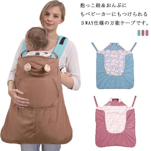 ベビー ケープ 抱っこ紐 防寒ケープ 3WAY 裏起毛 ポンチョ フード付き ベビーカー ブランケット 裏フリース 抱っこひも 防寒カバー 抱っこカバー ベビーカーカバー 無地 撥水 洗える ベビーケープ
