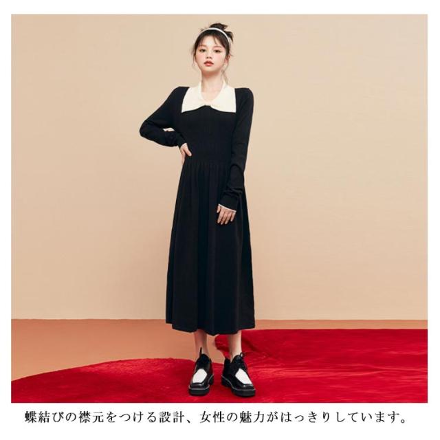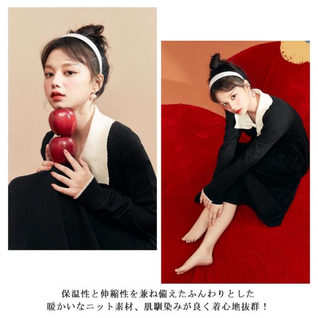 | 普段使いにも着まわせるワンピ—ス。 ゆったりラインとちょうど良い着丈がお気になるお尻を隠し、体型カバーに役に立ち。 蝶結びの襟元をつける設計、女性の魅力がはっきりしています。 保温性と伸縮性を兼ね備えたふんわりとした暖かいなニット素材、肌馴染みが良く着心地抜群! シンプルなデザインで、トップスどのアイテムとのコーディネートにも合わせやすい。 | |