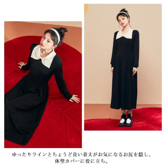 ニットワンピース aライン レディース ニットワンピ ロング マキシ丈ワンピース プルオーバー 長袖 リボン付 体型カバー Aライン 秋 冬 お出かけ デート デイリー 着痩せ ゆったり 可愛い カジュアル