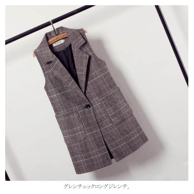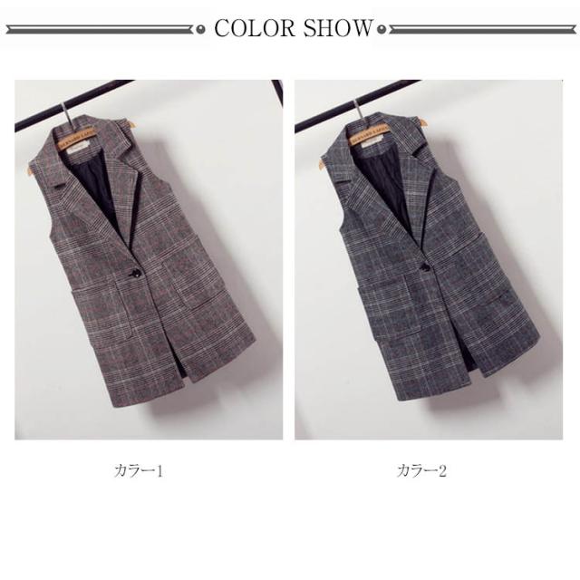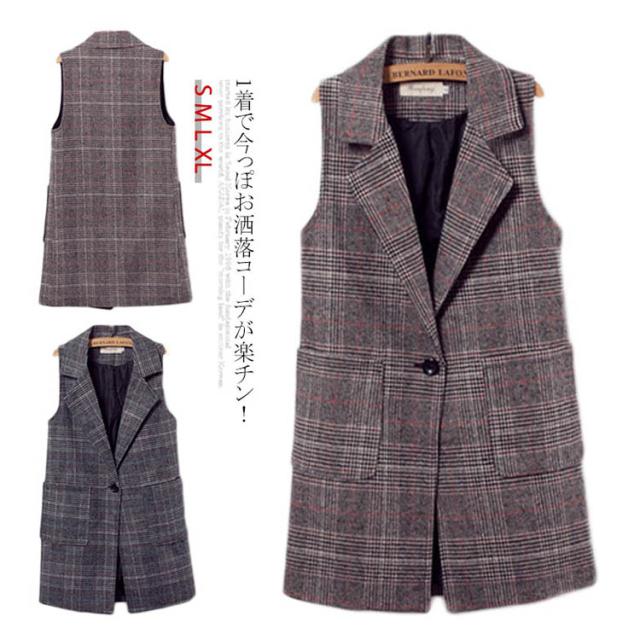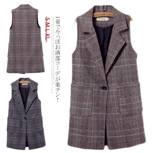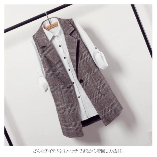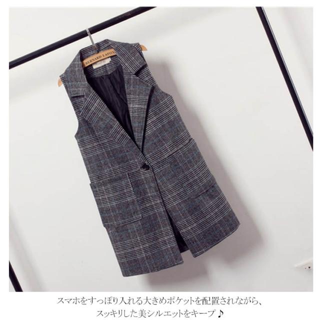 ジレ レディース ロングジレ ロングベスト ベスト ノースリーブ ジレベスト ジレンチ ロング丈 チェック柄 ベスト 羽織 ポケット付き 大きいサイズ 春秋 カジュアル