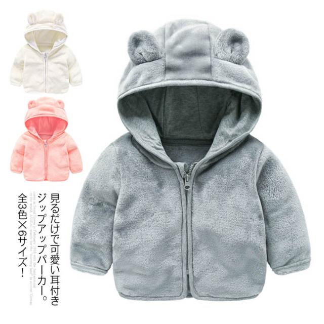 《送料無料》全3色×6サイズ!子供服 耳付きパーカー 女の子 ボアジャケット ボアパーカー フード付き フリース パーカー ジップアップ ボア 秋 冬 可愛い