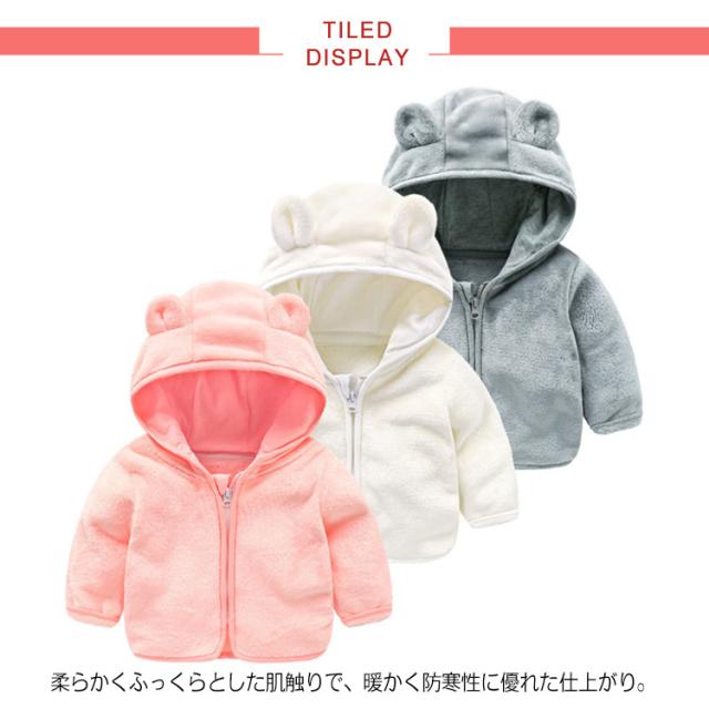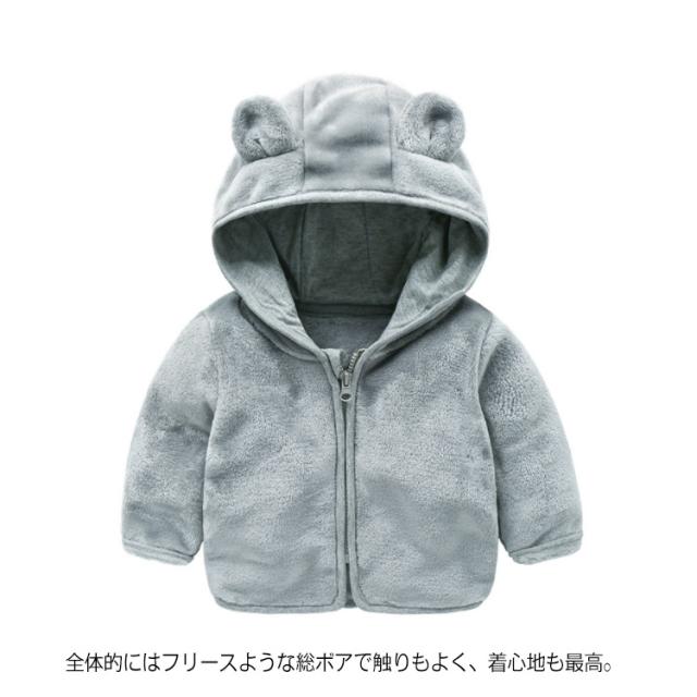 | 全3色×6サイズ!見るだけで可愛い耳付きジップアップパーカー。 柔らかくふっくらとした肌触りで、暖かく防寒性に優れた仕上がり。 全体的にはフリースような総ボアで触りもよく、着心地も最高。 耳付きのフードデザインもさりげないポイント。 寒さ対策に大活躍のアウター決まり。 | |