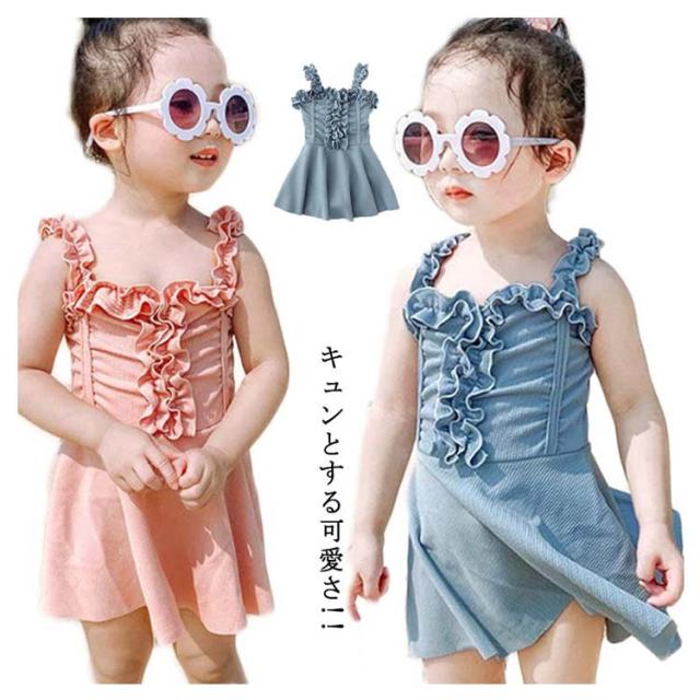 キッズ ワンピース 水着 フリル ベビー 水着 ワンピース 可愛い スクール水着 ジュニア みずぎ 女の子 プール 水着 幼稚園 保育園 90 100 110 子供用