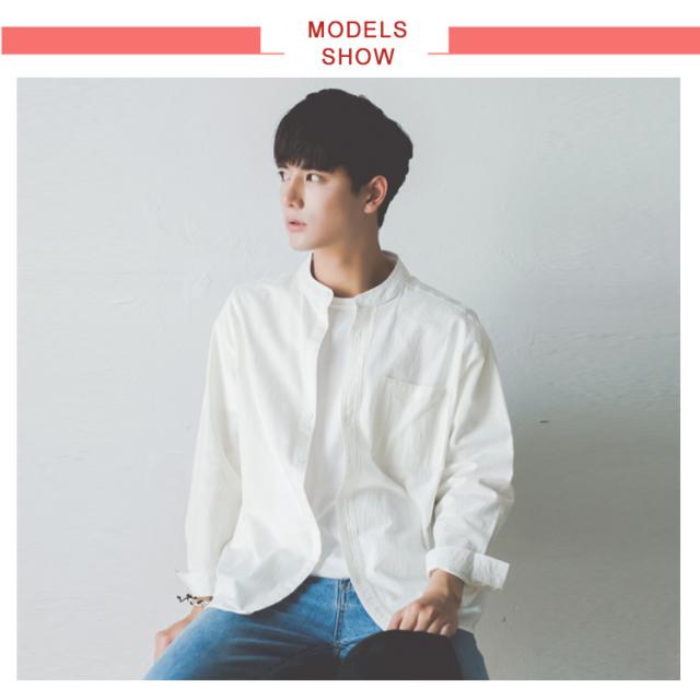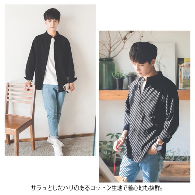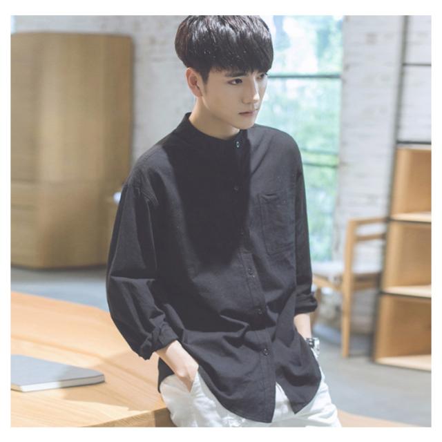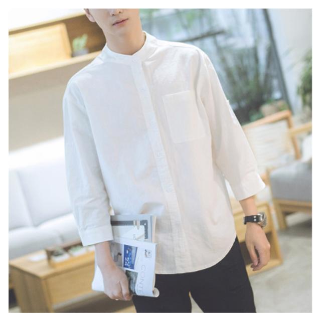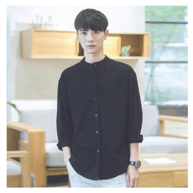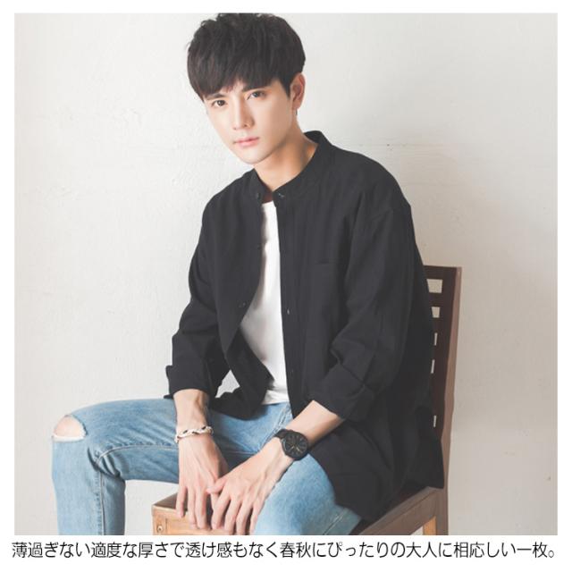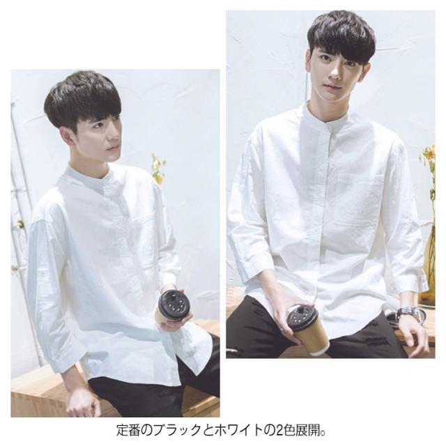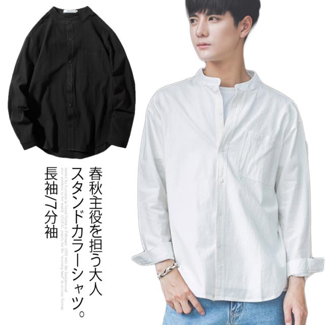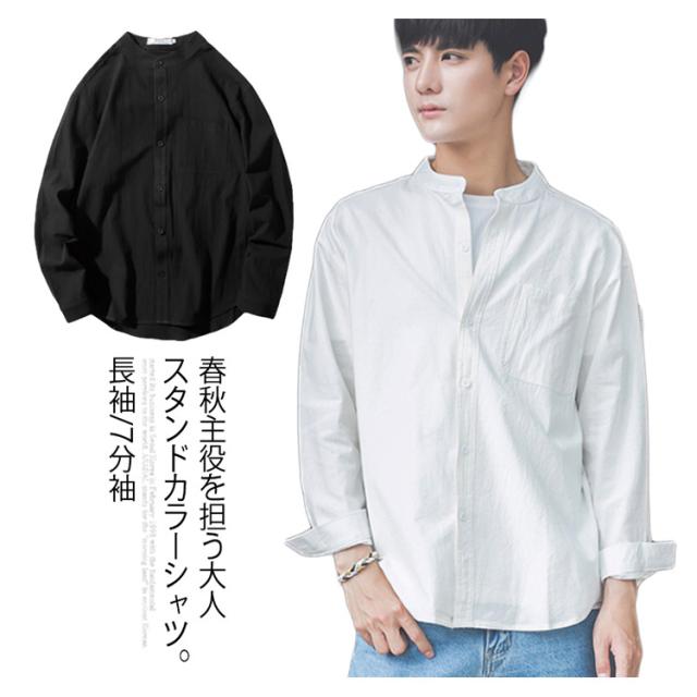 《送料無料》立ち襟シャツ メンズ スタンドカラーシャツ シャツ 長袖 七分袖 カジュアルシャツ 春シャツ 白 黒 無地 通勤 通学