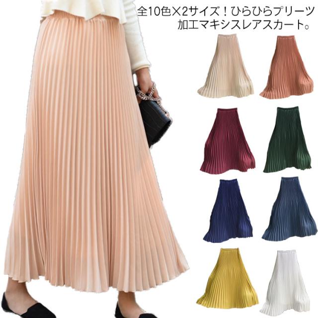 《送料無料》全10色×2サイズ!プリーツスカート ロング スカート マキシスカート フレア マキシ スカート フレアスカート プリーツ ロングスカート リゾート 旅行 大きサイズ キレイめ