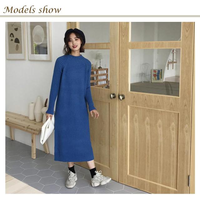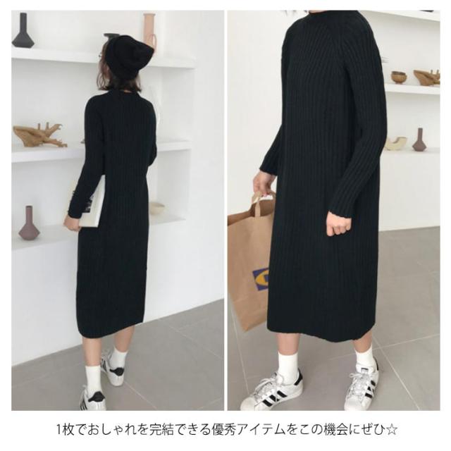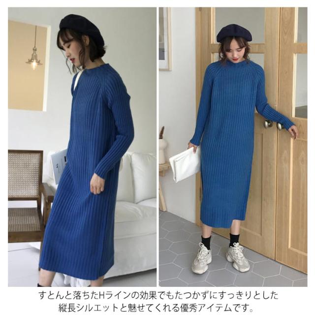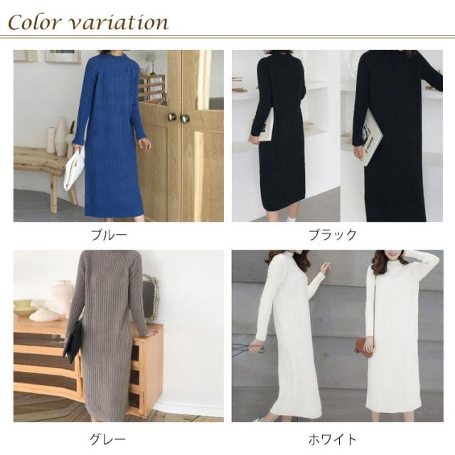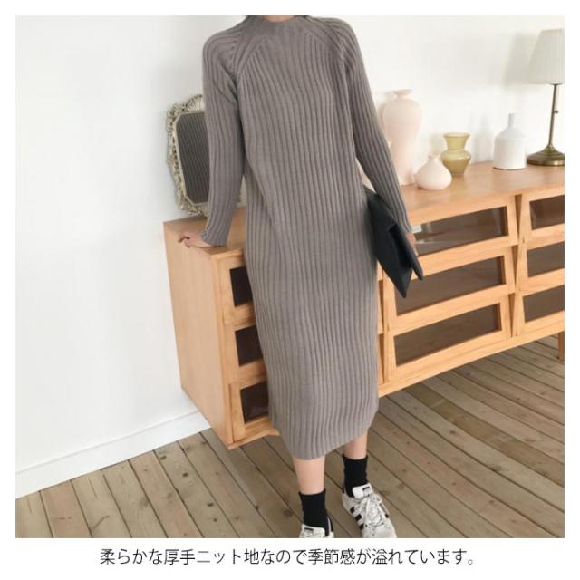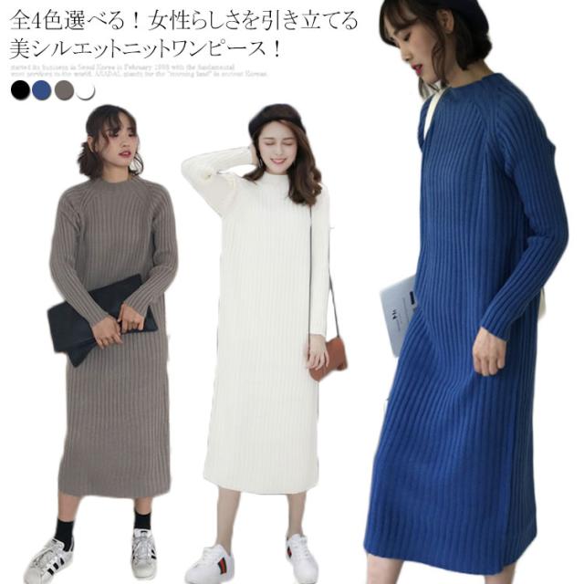 《送料無料》全4color!ニットワンピース ニット ワンピース ハーフハイネック ロングワンピース マキシワンピース ミモレ丈 ロング丈 ざっくり編み ニットワンピ 春 秋 冬