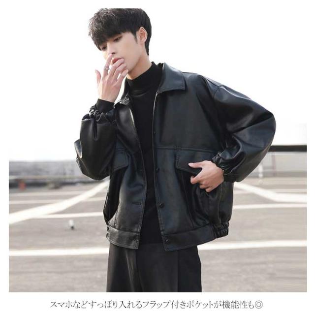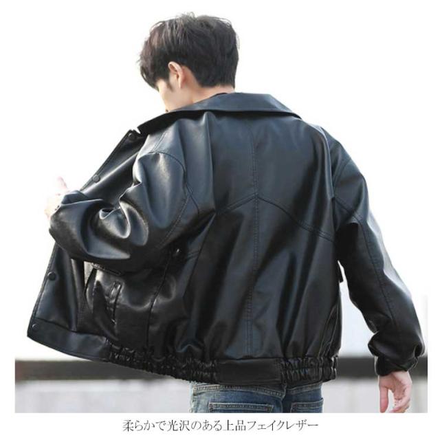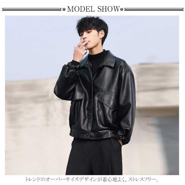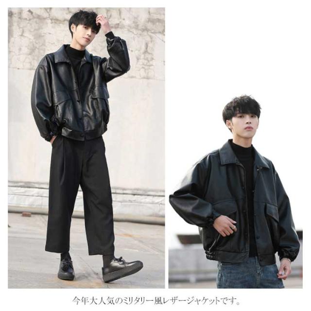 レザージャケット メンズ PU ライダース ジャケット ジャンパー ブルゾン アウター コート ショート丈 オーバーサイズ ビッグシルエット ミリタリージャケット ボタン 秋冬 春 おしゃれ