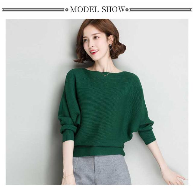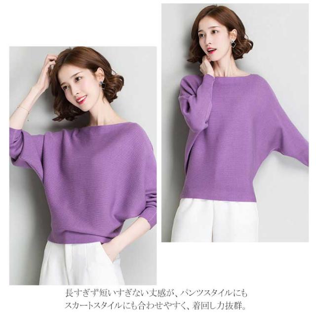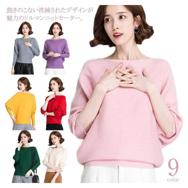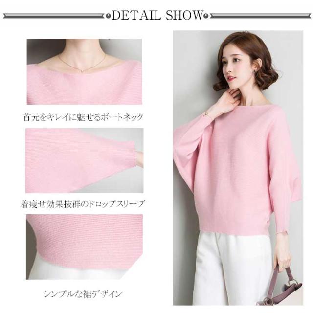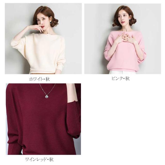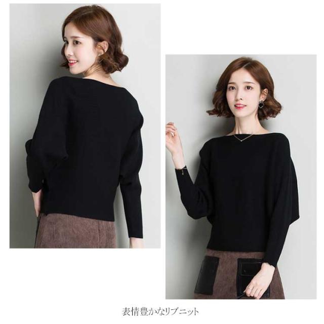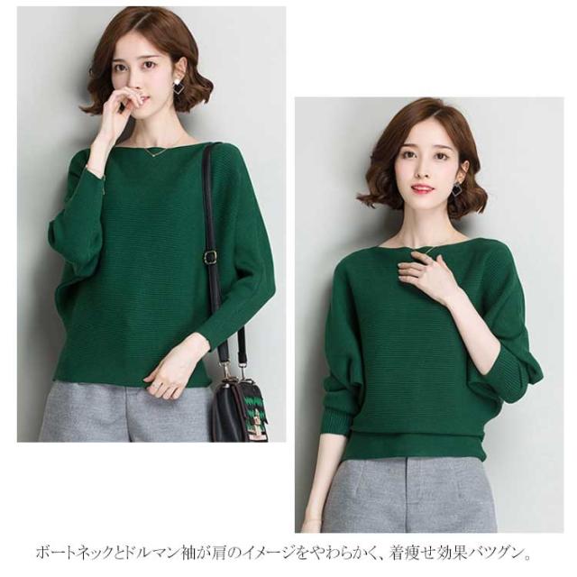 ニットトップス ニットセーター レディース ドルマンスリーブ ボートネック リブ編み ゆったり ゆるカジ ショート丈 長袖 セーター 無地 体型カバー 着痩せ 大きいサイズ ドルマン袖 秋冬 秋服 冬物 通勤 お出かけ