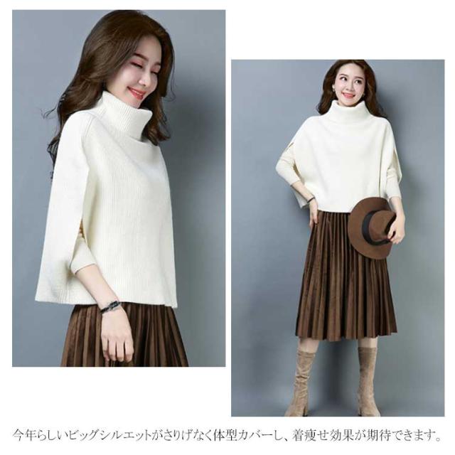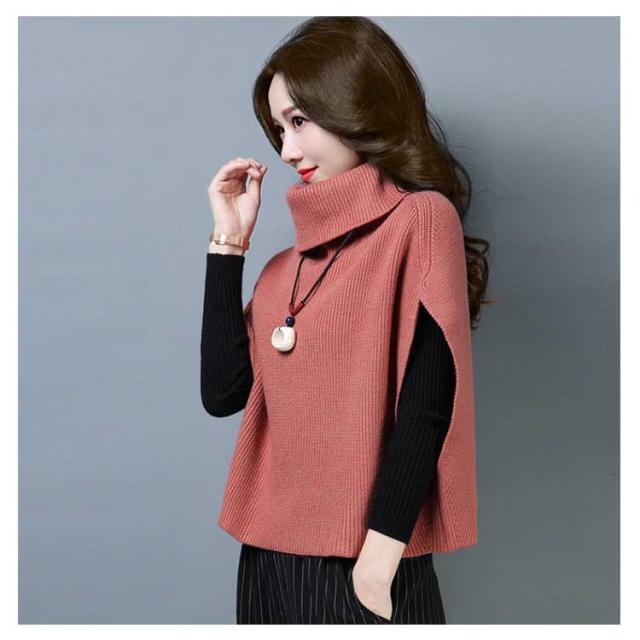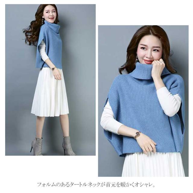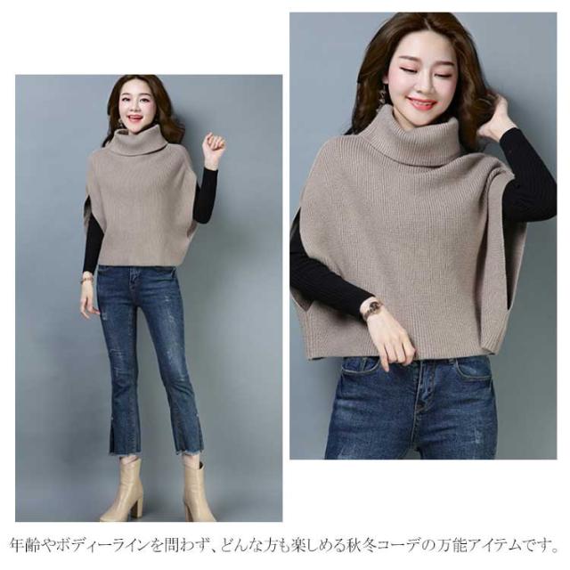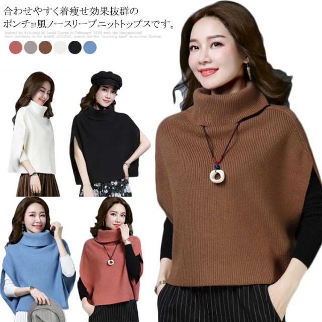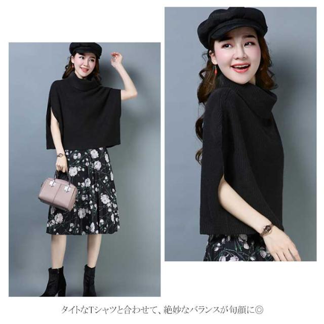 ポンチョ風がオシャレ! ニットトップス ニット ベスト マント ドルマンニット ニットベスト レディース トップス タートルネック ノースリーブ リブ編み ゆったり ショート丈 ニットセーター 半袖 秋冬 2019新作 大きいサイズ オーバーサイズ ハイネック