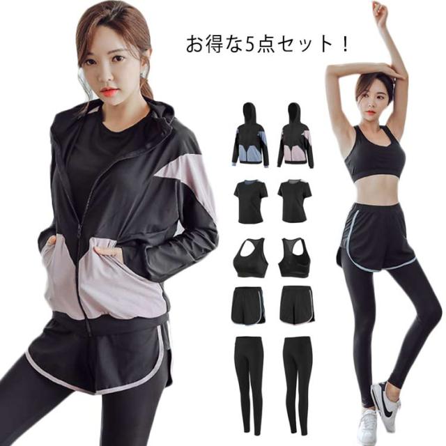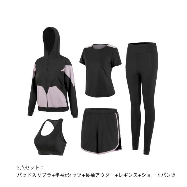 セットアップ スポーツウェア 上下セット ショートパンツ レディース ブラ 半袖tシャツ レギンス ジャージ 5点セット おしゃれ ジムウェア ヨガウェア ショートパンツ トレーニングウェア フィットネスウェア ランニングウェア ウォーキング 吸汗速乾 アウター