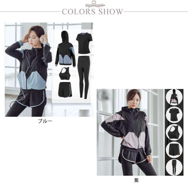 | お得な5点セット! 伸縮性が抜群!激しい運動時にも動きやすく体を優しく包んでくれます。 サラサラの着心地で運動がもっと楽しくなる。 スポーツ時はもちろん、普段使いやルームウエアとしても最適です。 5点セット:パッド入りブラ+半袖tシャツ+長袖アウター+レギンス+ショートパンツ | |
