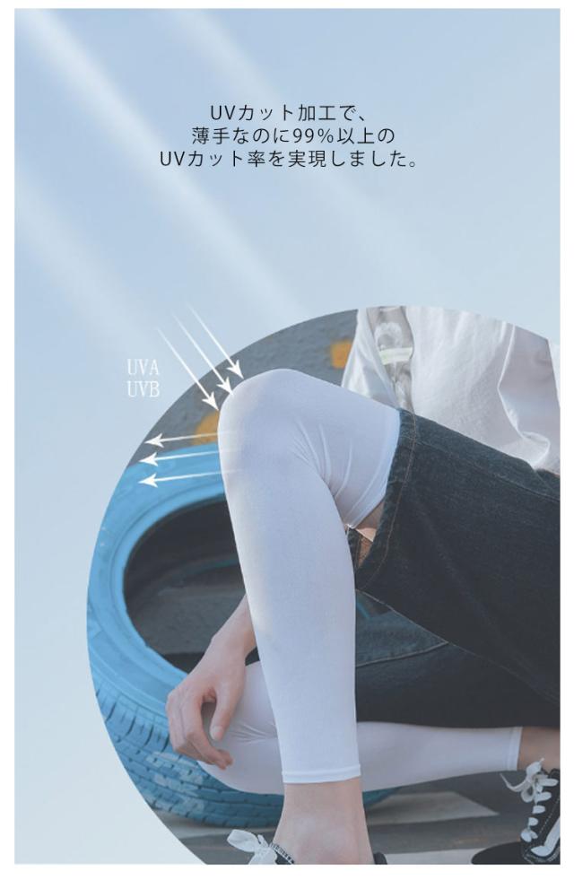 | 日差しから肌を守るUV対策加工のレッグカバー。 さらっとシルクのような肌触りでなめらか快適! UVカット加工で、薄手なのに99%以上のUVカット率を実現しました。 接触冷感素材で、春夏でも暑苦しくなく快適に履ける。 吸汗速乾でサラサラ爽やかなはき心地。 アームカバーとしても使えます。 スポーツやアウトドア、屋外の作業時の日焼け対策におすすめ! | |