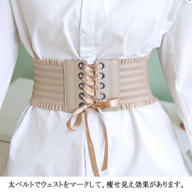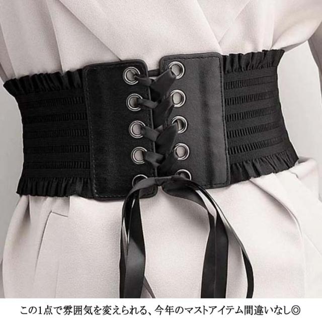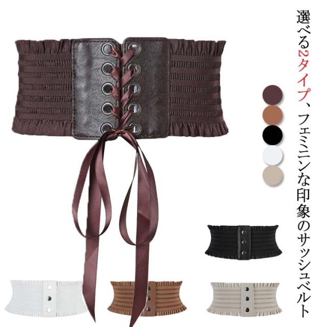 太ベルト レディース コルセット レースアップ ゴム ワイドベルト オールシーズン きれいめ リボン ウェスト調整 【送料無料】サッシュベルト ゴムベルト 結婚式 韓国 カジュアル エレガント ドレス ワンピース フリル スナップボタン 伸びる