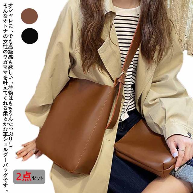 2点セット 大きめ レディース レザー A4 大人 軽量 革 2way お出かけ 通学 斜めがけ 革 小さめ バックインバッグ 通勤 ハンドバッグ付き おしゃれ 旅行バッグ トラベル ショルダーバッグ