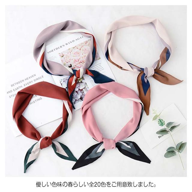 | 光沢の美しいスカーフは今季注目のアイテムです♪ シンプルな花柄が女性らしい雰囲気を醸し出してくれます。 シルクのような柔らかい生地でエレガントな高級感が溢れる。 優しい色味の春らしい全20色をご用意致しました。 どんなコーデに合わせても女性らしさを演出してくれます。 | |
