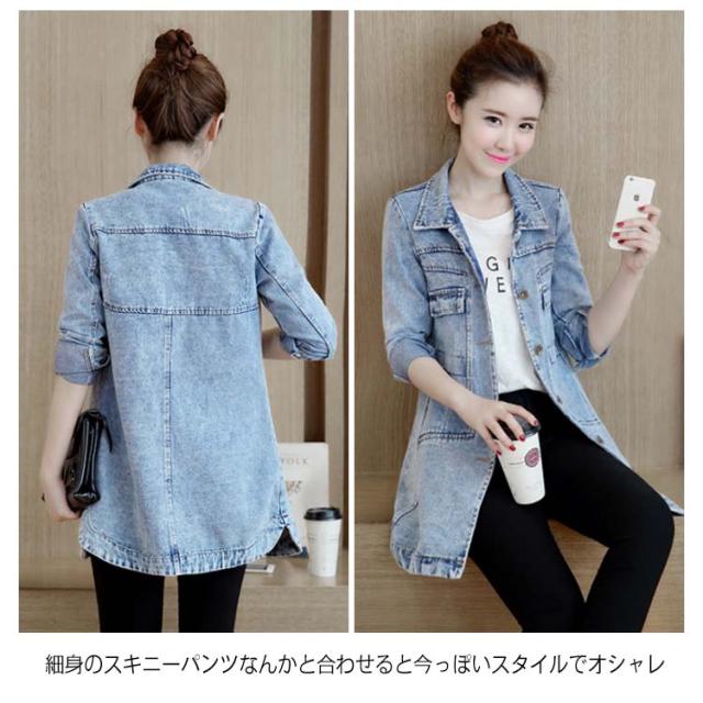《送料無料》S-5XLサイズ!デニムアウター レディース デニムコート ミディアム Gジャン デニム 羽織り ロングコート 小さいサイズ 大きサイズ ポケット付き 春 秋 大人カジュアル