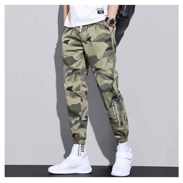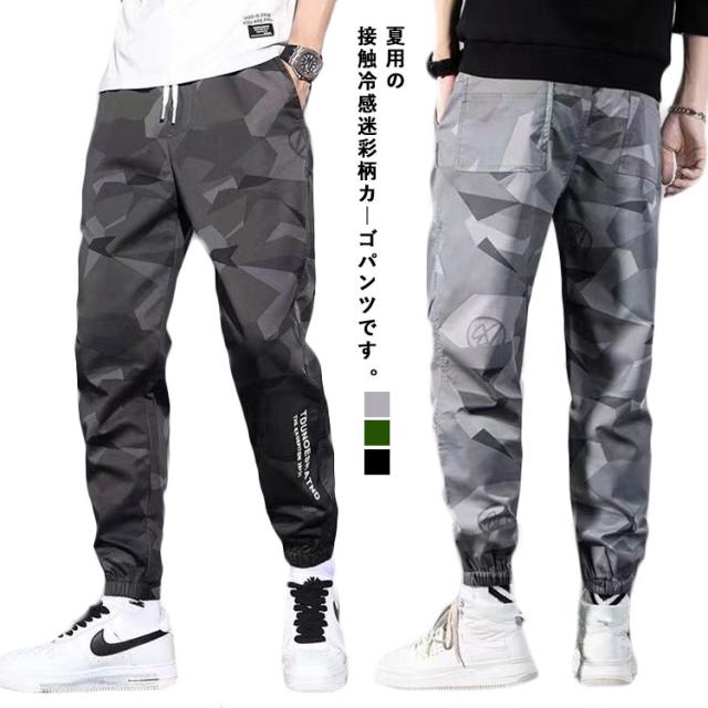 迷彩柄 カーゴパンツ 長ズボン ロングパンツ 速乾 接触冷感 9分丈 パンツ ドライパンツ ジョガーパンツ ボトムス ミリタリー メンズ カジュアル スポーツウェア 涼感 ひんやり 通気 几何柄 カモフラージュ柄 M-5XL アイスシルク