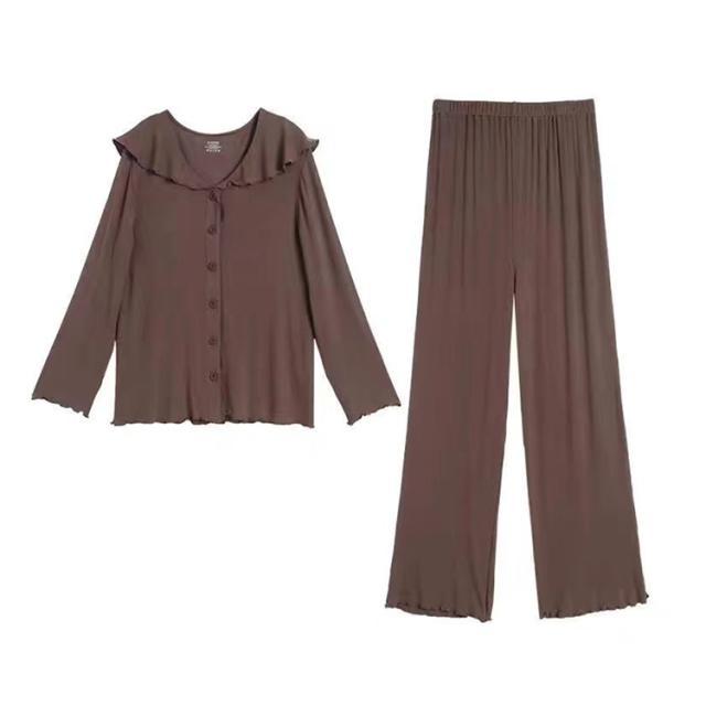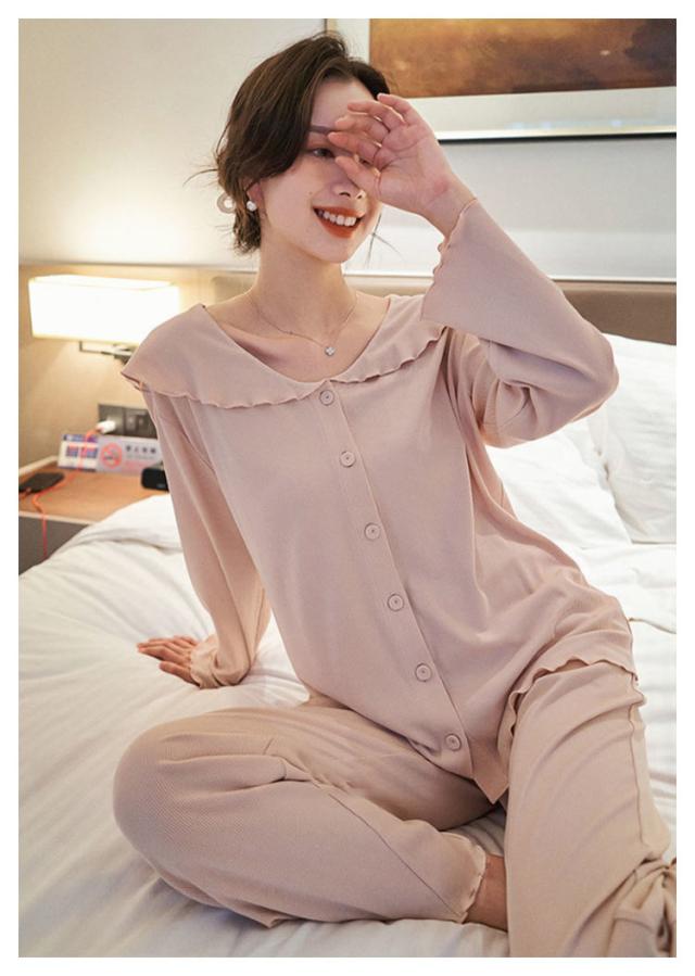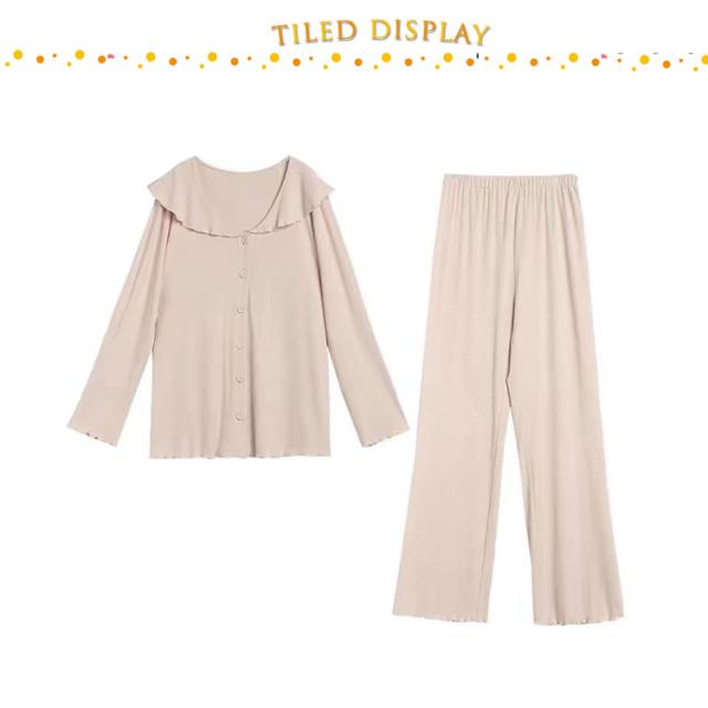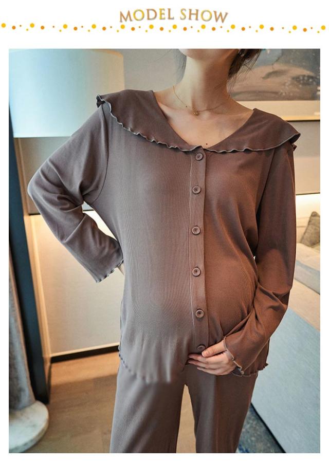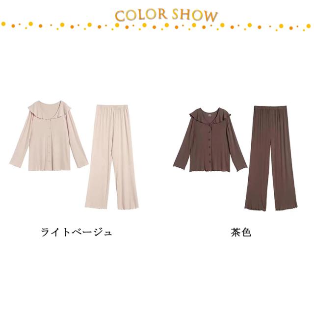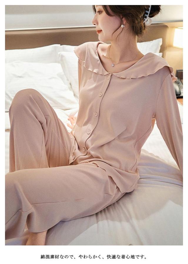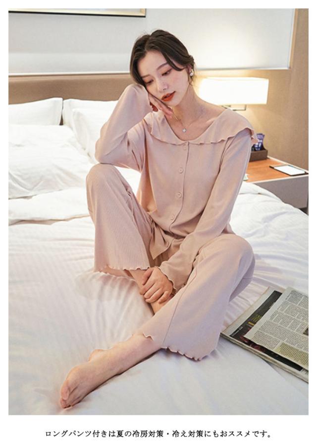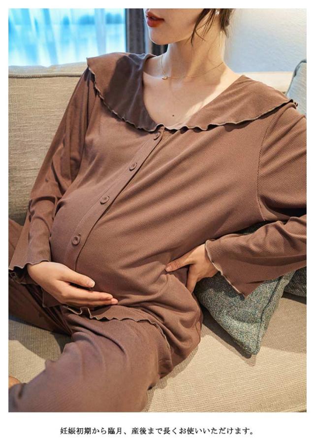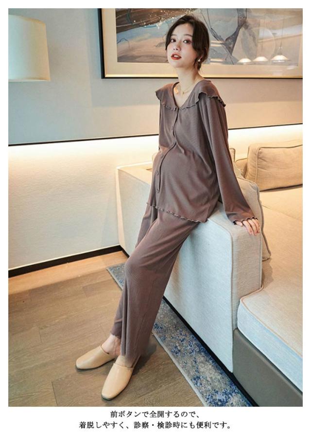 部屋着 春夏 パジャマ 入院 上下 前開き 長ズボン 授乳服 冷感 接触冷感 ルームウェア ストレッチ 伸縮 長袖 薄手 【送料無料】マタニティ 産前 産後 アップ 可愛い ウエスト調節 柔らか 秋 フリル