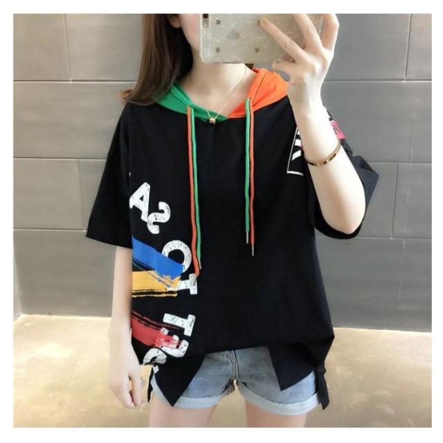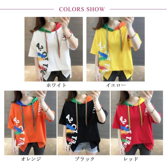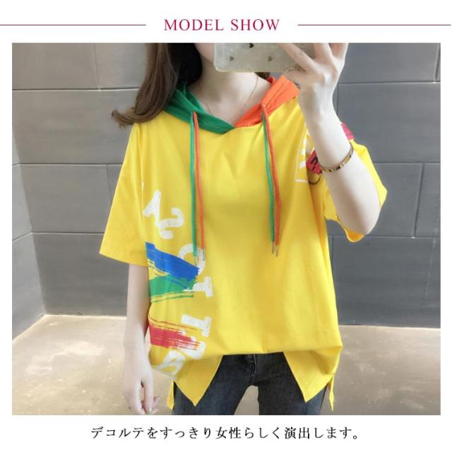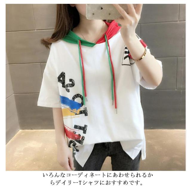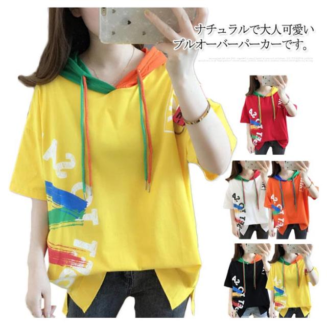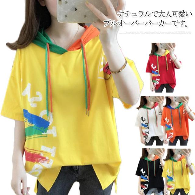 プルオーバー パーカ tシャツ 通勤 夏 レディース フード付き パーカー トップス ビッグパーカー 半袖 ドロップショルダー ビックシルエット 通学 通勤 大きいサイズ 半袖Tシャツ
