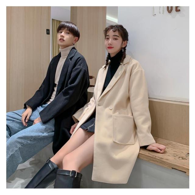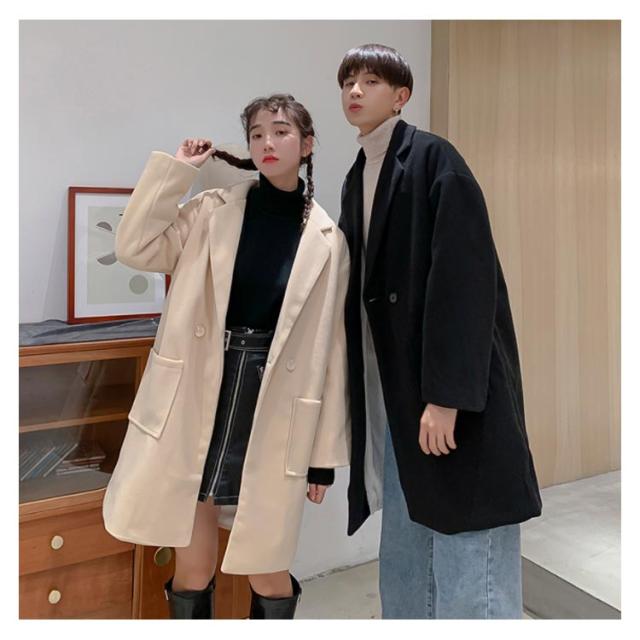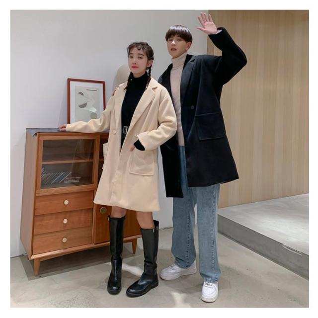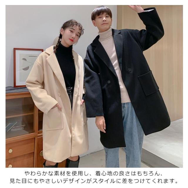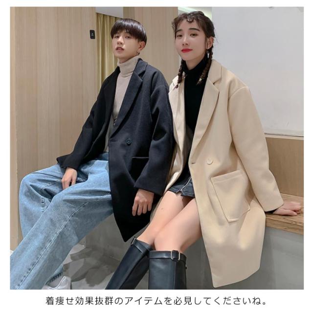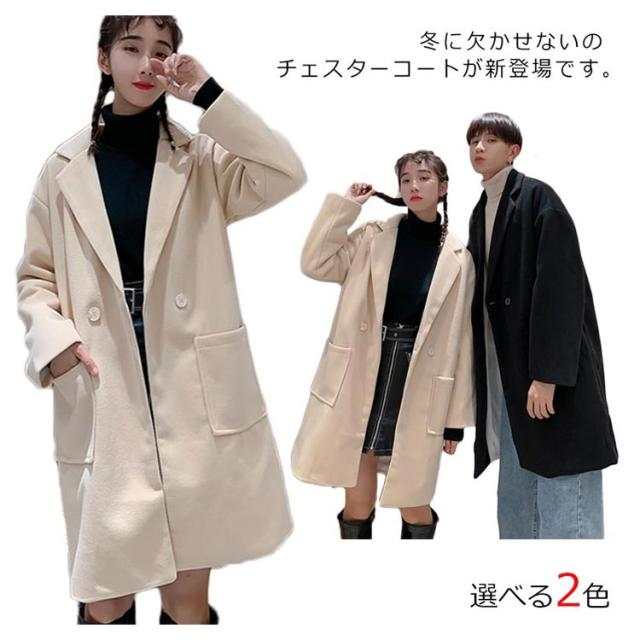 《送料無料》チェスターコート ラシャコート メンズ レディース ゆったり 無地 秋服 オーバーサイズジャケット カップル ペアルック 韓国スタイル アウター おしゃれ 新作