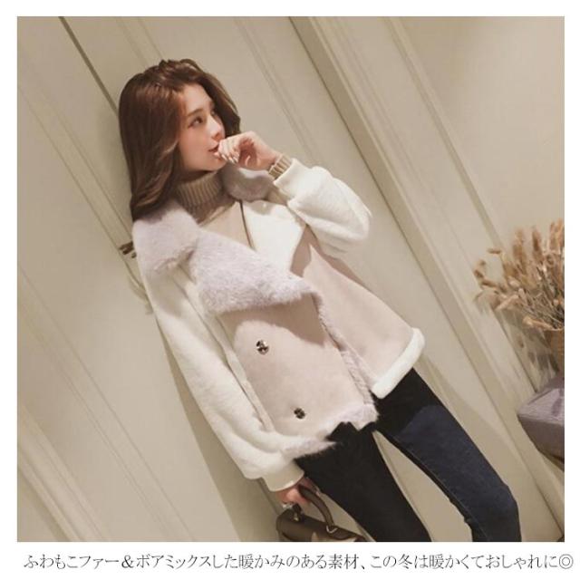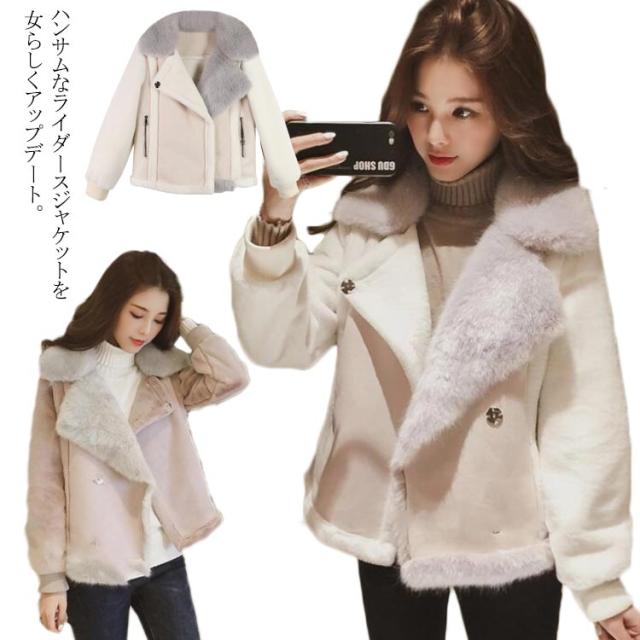 ムートン ジャケット ライダースコート ムートンコート レディース フェイクファー付き ボア アウター ライダースジャケット ボアジャケット ミックス ムートンジャケット ミセス