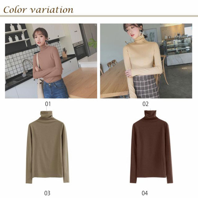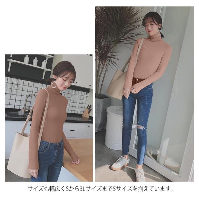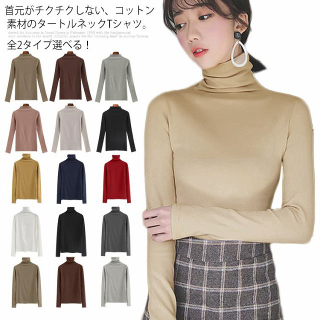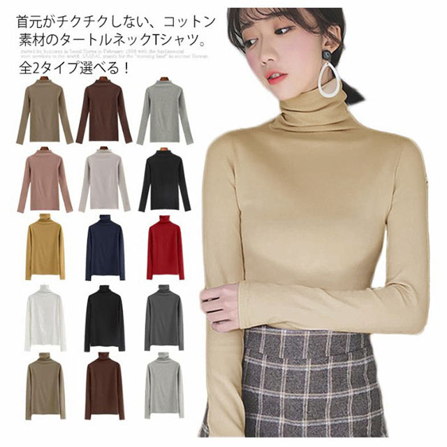 | 全2タイプ選べる!首元がチクチクしない、コットン素材のタートルネックTシャツ。 通気性が良く、お肌にも優しい綿混素材だから着心地よい。 タートルネックとプチハイネックの2タイプで、豊富なカラーバリエーション展開が魅力。 サイズも幅広くSから3Lサイズまで5サイズを揃えています。 首元の冷えやすい季節には持っておきたいタートルネックをぜひ取っておきたい。 1枚ではもちろん、レイヤードやインナー使いなど幅広いスタイリングで大活躍! パンツでもスカートでもボトムスを選ばず、カジュアルからキレイめコーデまで着回 | |
