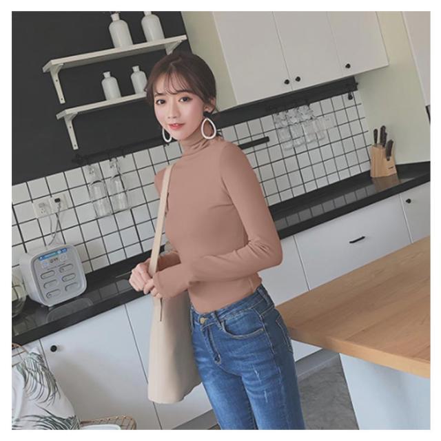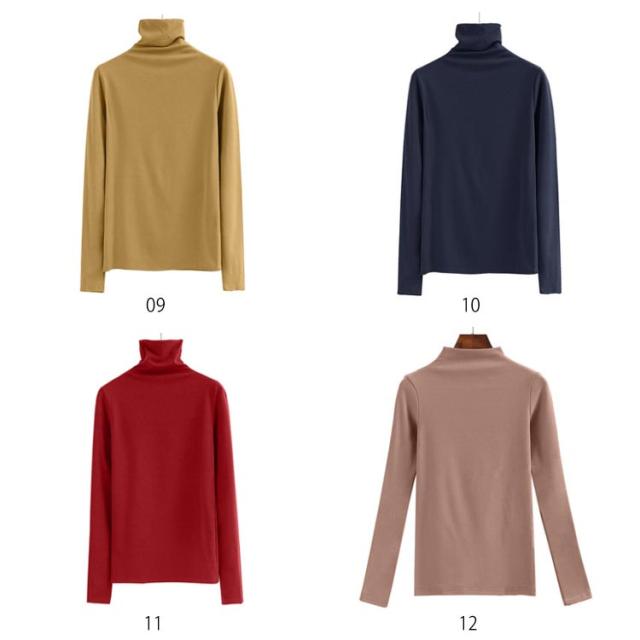 《送料無料》《タートルネック/プチハイネック》ボトルネック カットソー レディース ハイネック タートルネック Tシャツ 長袖カットソー 長袖tシャツ シンプル 無地 インナー 春 秋