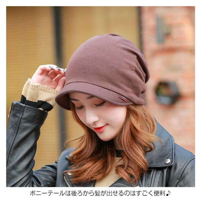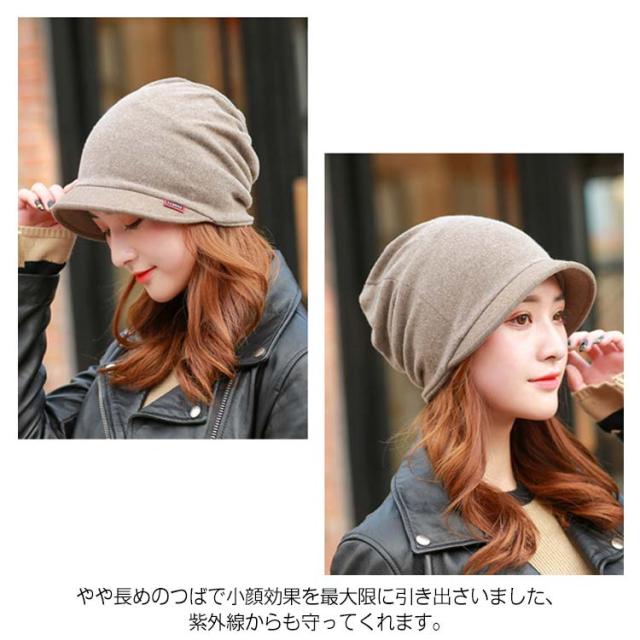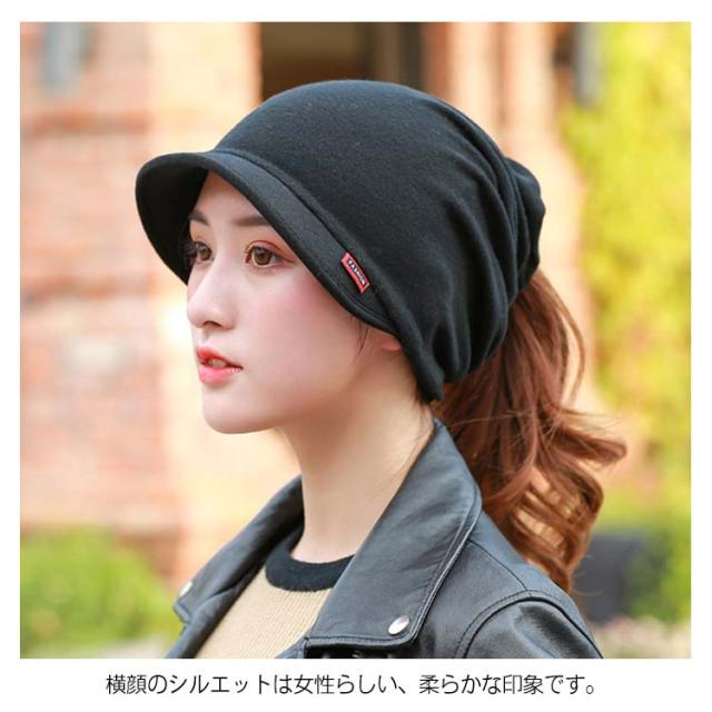 | つばが付きなので小顔効果のあるゆったりキャスケットです。 横顔のシルエットは女性らしい、柔らかな印象です。 ポニーテールは後ろから髪が出せるのはすごく便利♪ 柔らか生地で気持ち良く頭を優しく包み込む感じがたまらないです。 やや長めのつばで小顔効果を最大限に引き出さいました、紫外線からも守ってくれます。 | |