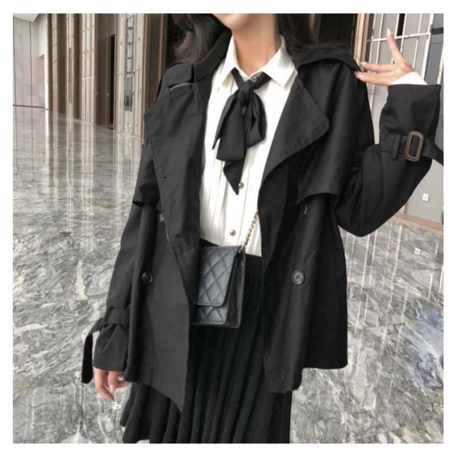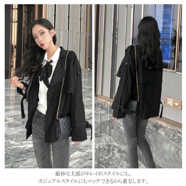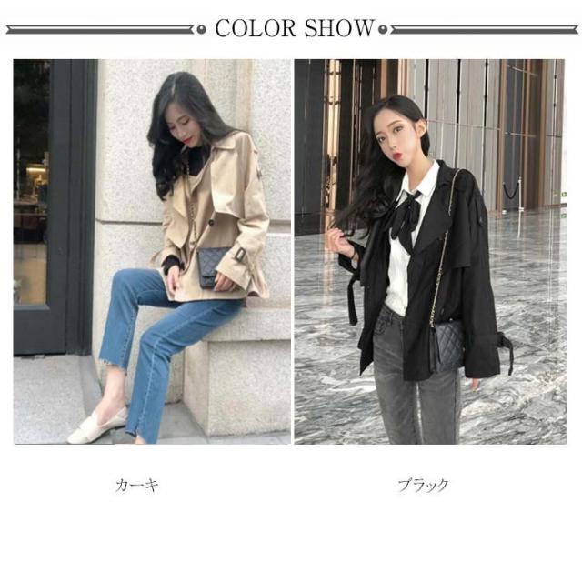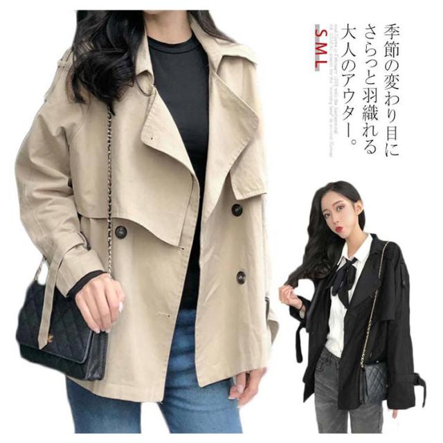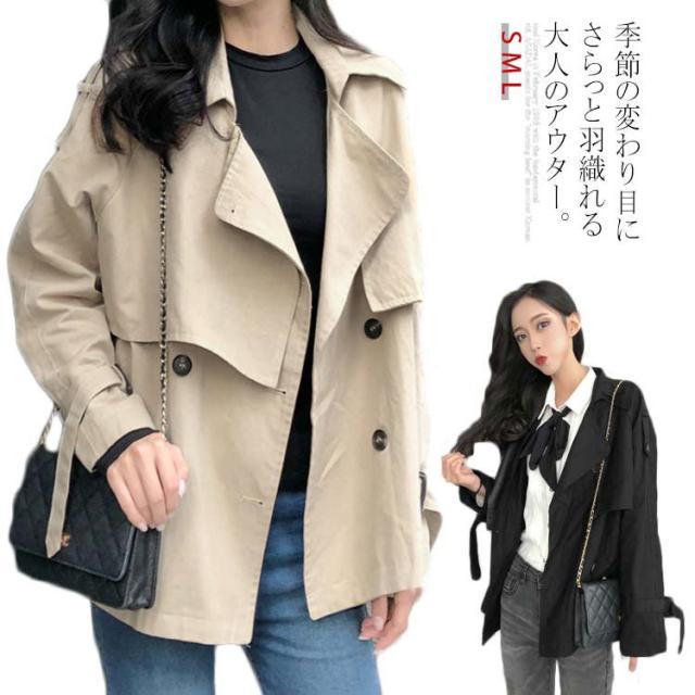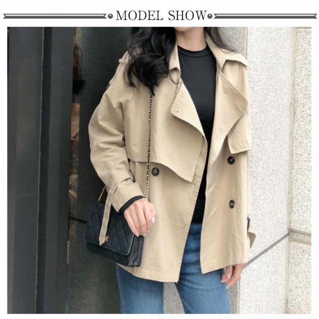 ショート丈 トレンチコート テロンチ レディース スプリングコート アウター ライトアウター 羽織り ダブルボタン ゆったり 秋 上着 無地 二重構造 ゆる感 カジュアル