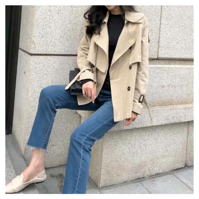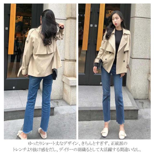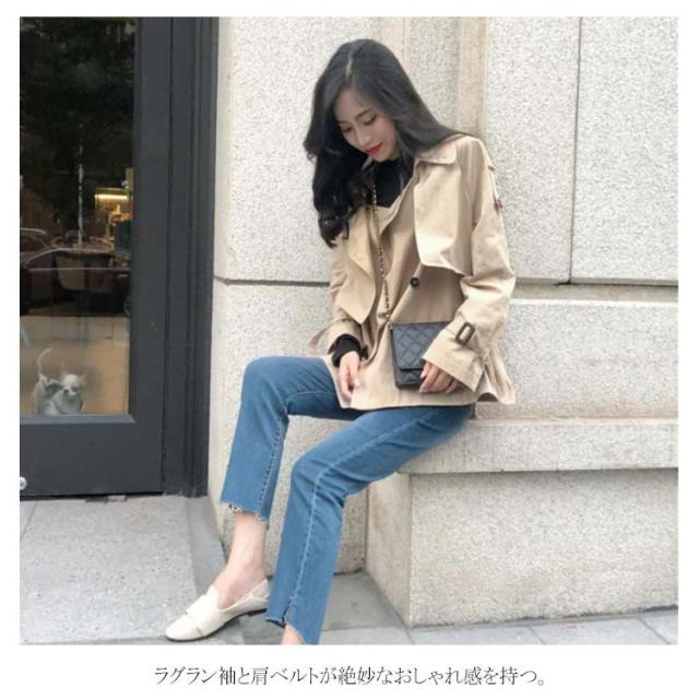 | 季節の変わり目にさらっと羽織れる大人のアウター。 ショート丈のトレンチコート、インナーを変えることでロングシーズン活躍する。 ラグラン袖と肩ベルトが絶妙なおしゃれ感を持つ。 ゆったりショート丈なデザイン、きちんとすぎず、正統派のトレンチより抜け感をだし、デイリーの羽織るとして大活躍する間違いなし。 絶妙な丈感がキレイめスタイルにも、カジュアルスタイルにもマッチできるから重宝します。 | |