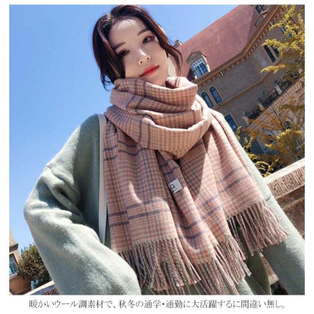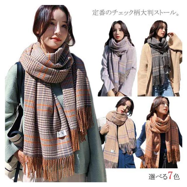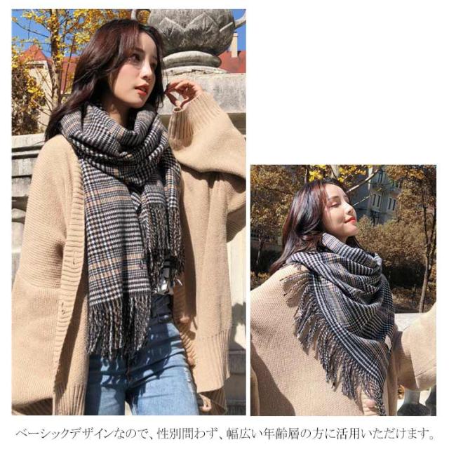 グレンチェック マフラー 千鳥柄 ストール 大判 カシミヤタッチ あったか フリンジ 大判ストール ショール チェック柄 肩掛け ひざ掛け 学生 通学 通勤 男女兼用 ユニセックス 秋冬 春 プレゼント ギフト クリスマスプレゼント