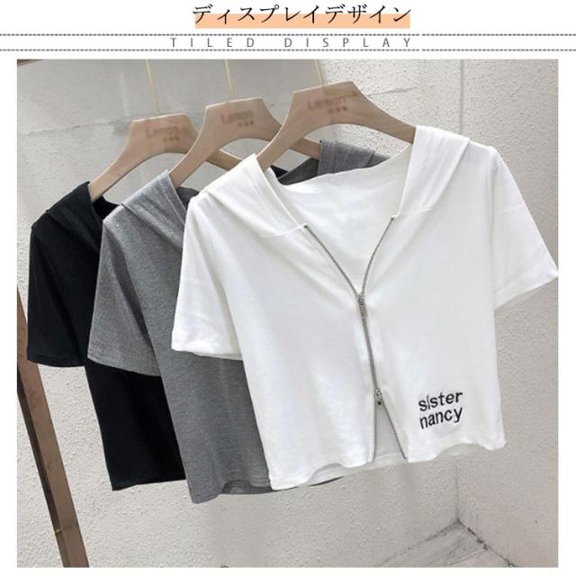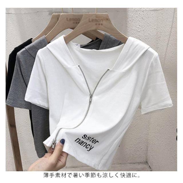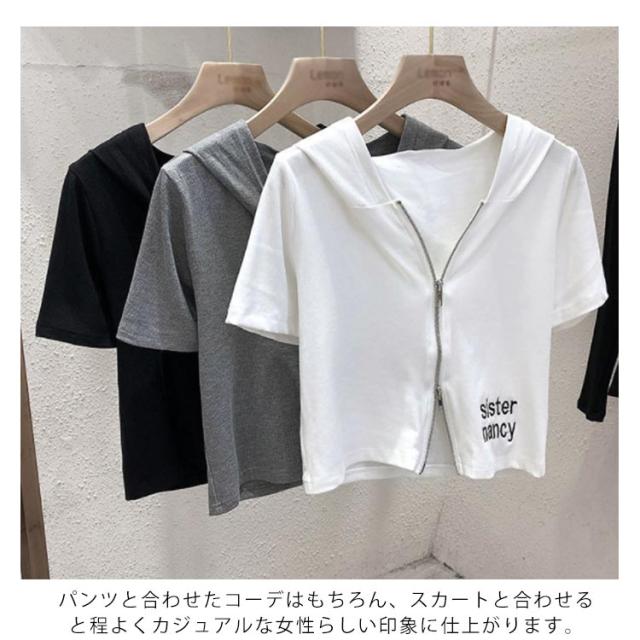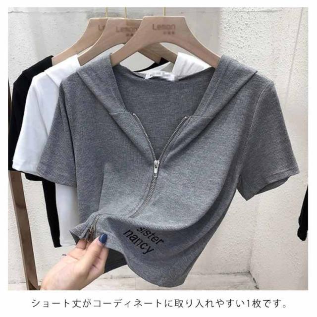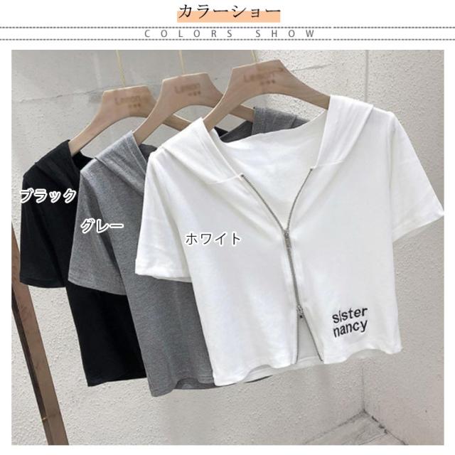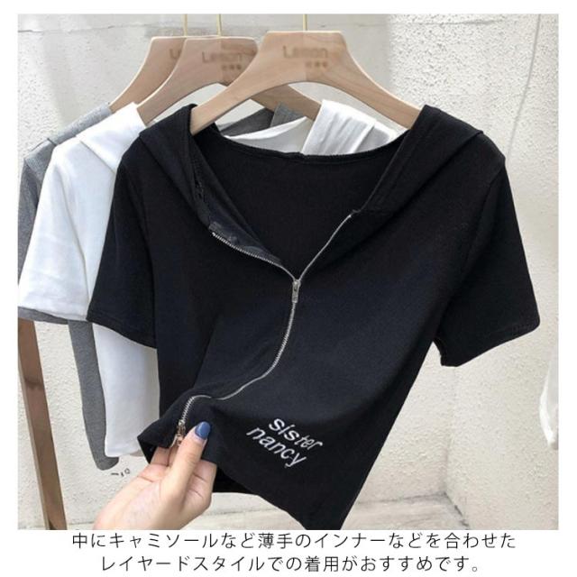 パーカー 半袖 レディース ジップアップ パーカー 薄手 おしゃれ 半袖tシャツ 半袖カットソー ショート丈 ジップパーカー 羽織り レイヤード 女性用 涼しい 夏パーカー 刺? ロゴ カジュアル 無地 シンプル 春夏 送料無料