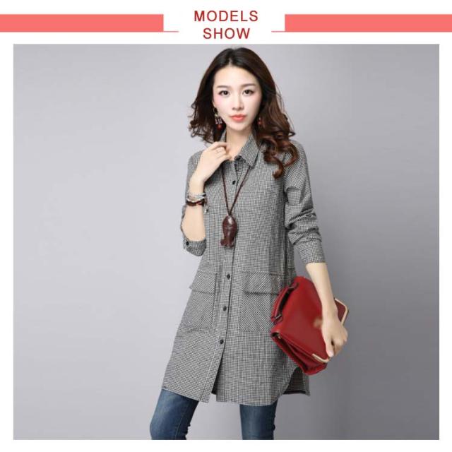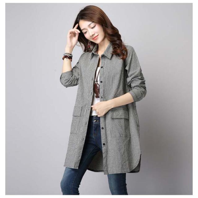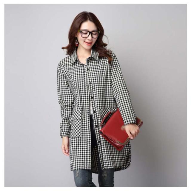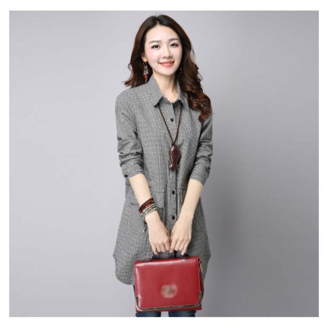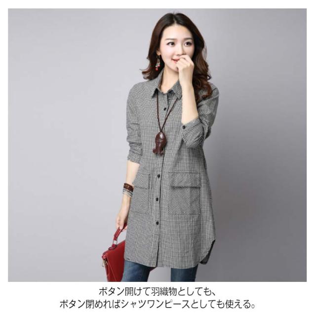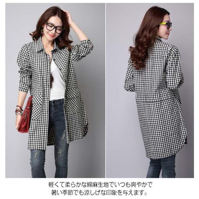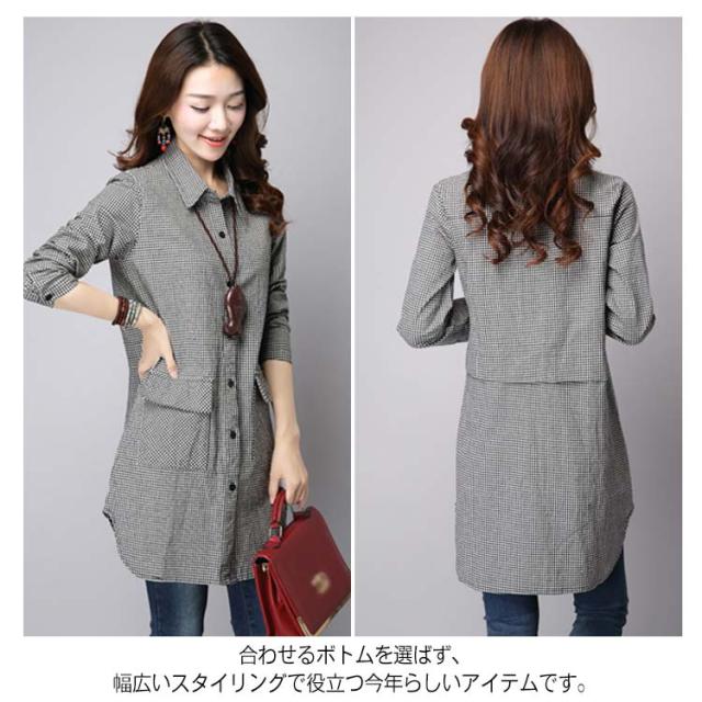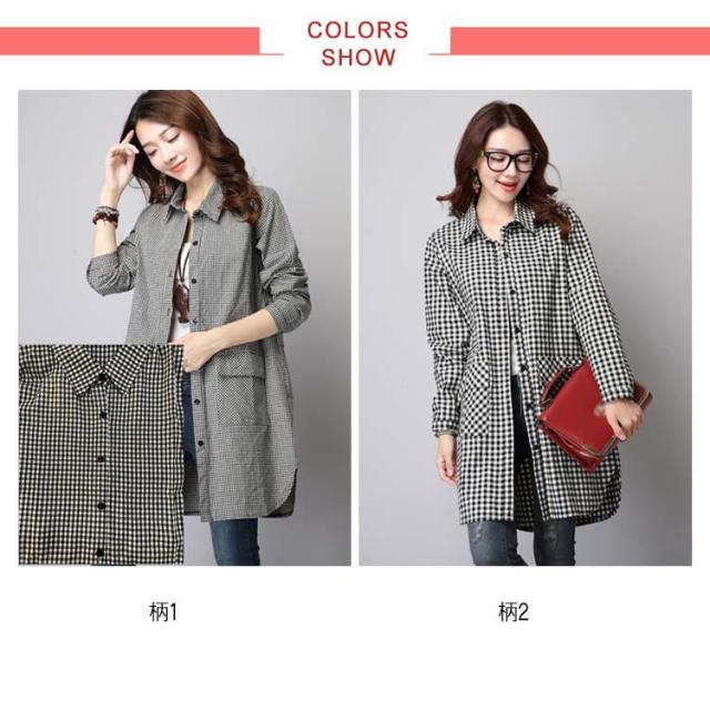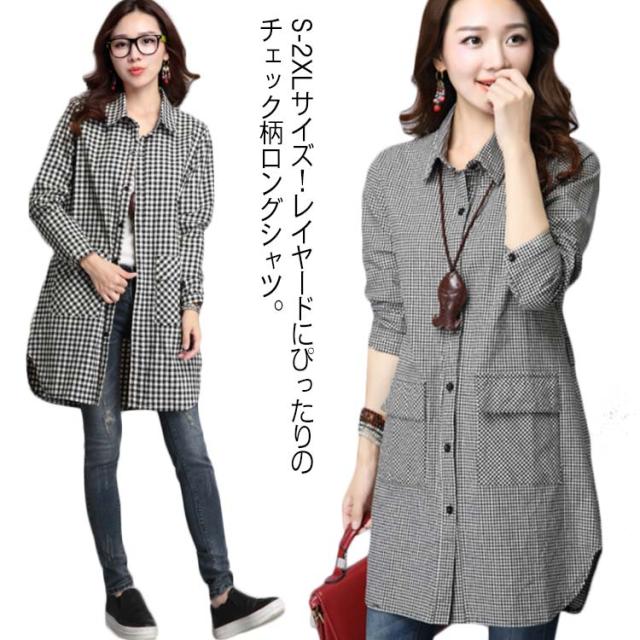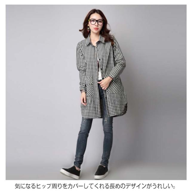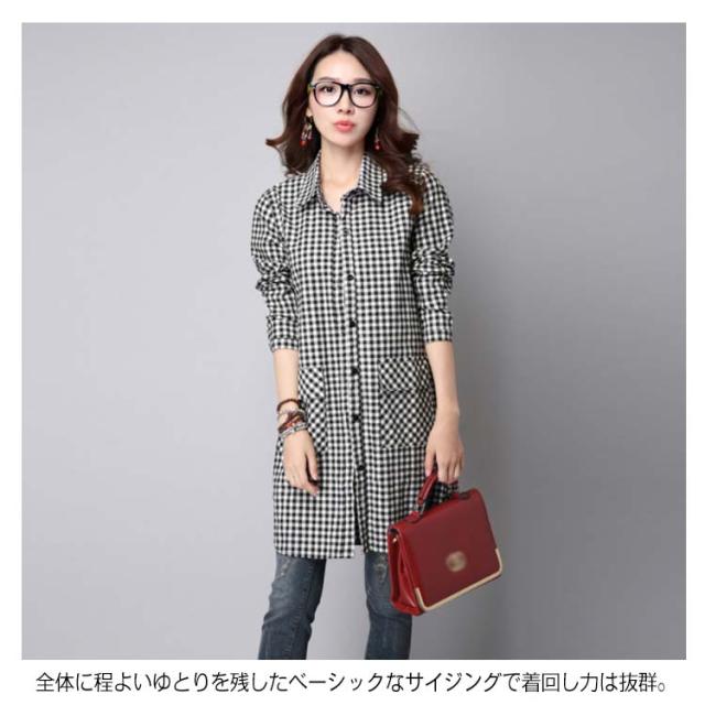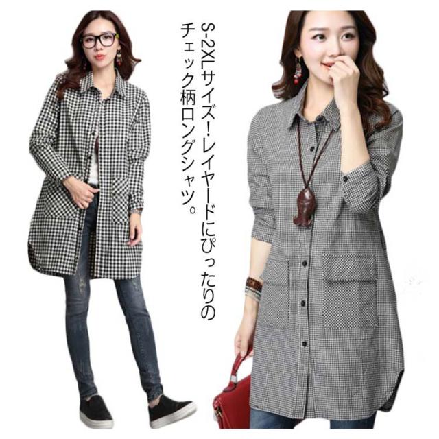 《送料無料》S-2XLサイズ!チェック柄ロングシャツ レディース シャツ ロングシャツ チュニック トップス チェック ギンガムチェック 大きサイズ 体型カバー 春 秋 大人カジュアル