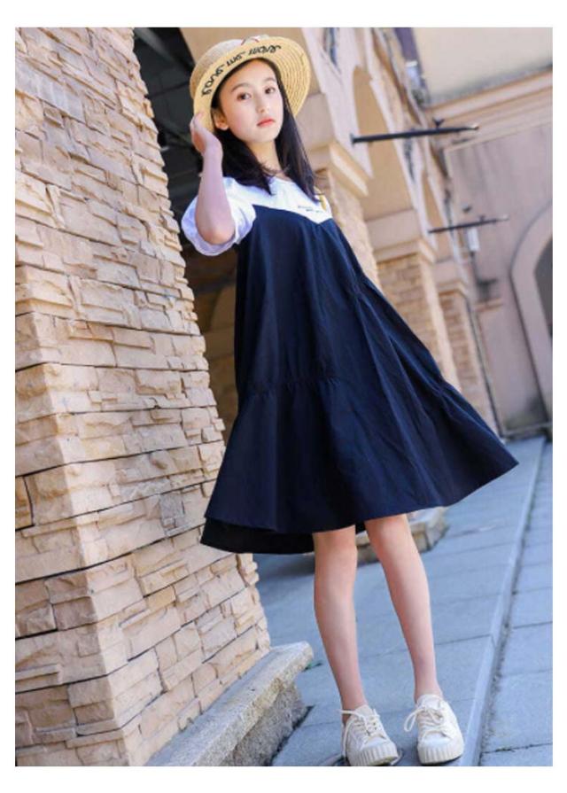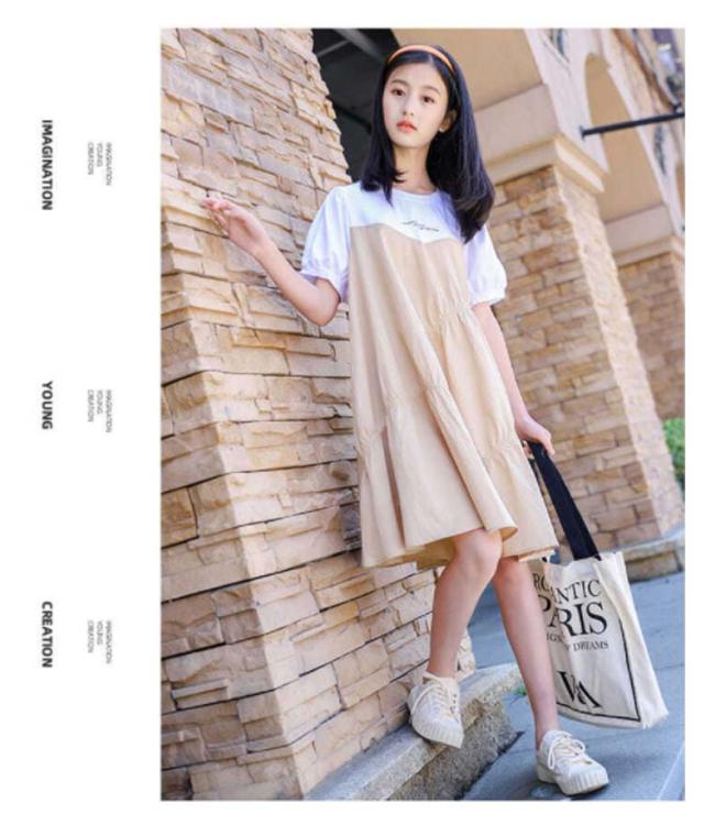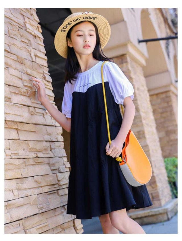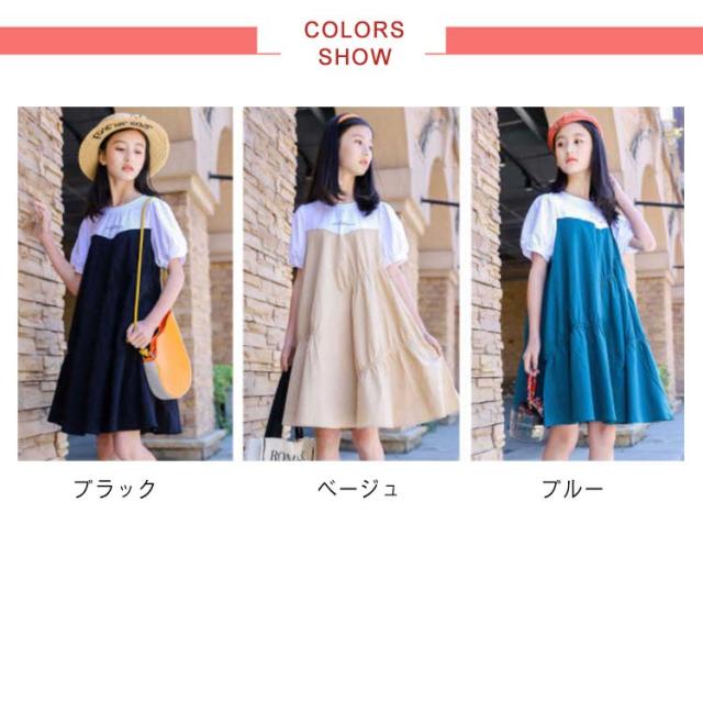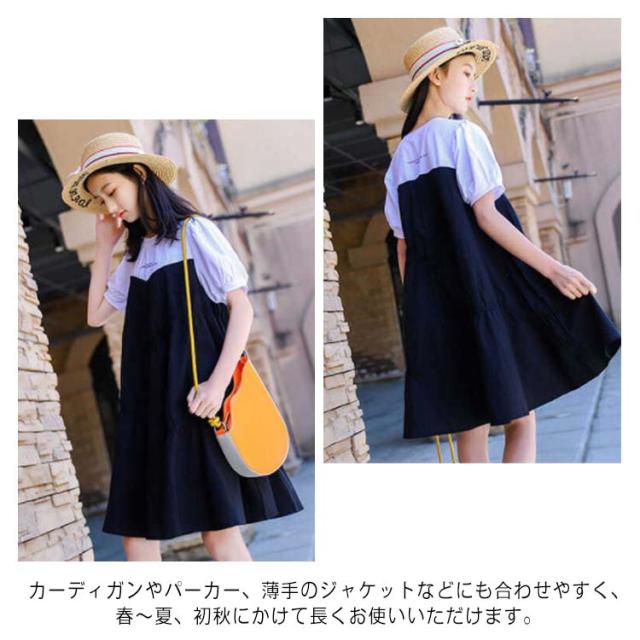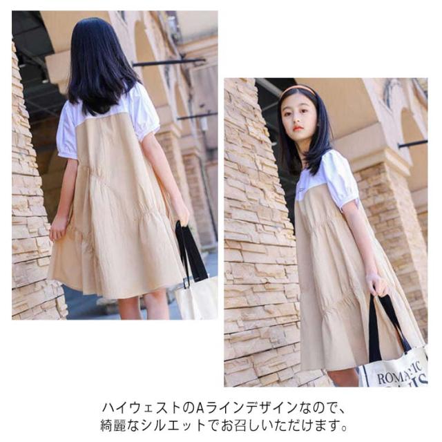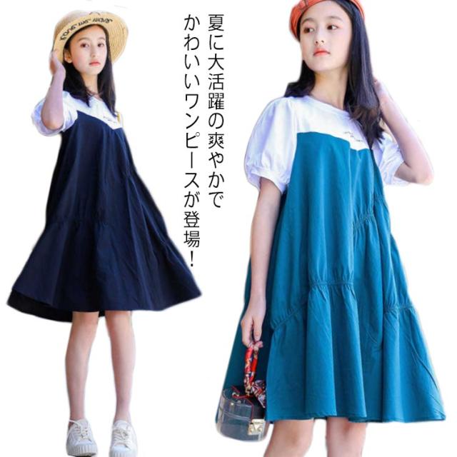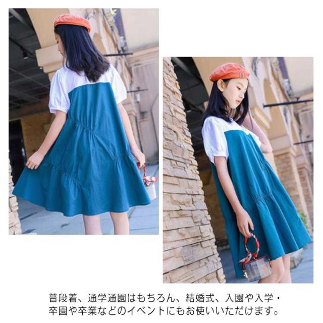 ワンピース 子供 半袖ワンピース フレアワンピース ワンピ 膝丈 クルーネック 切替え 子供服 こども服 夏服 体型カバー 学生 女の子 発表会 演奏会 結婚式 ビーチ リゾート ゆったり 可愛い 130 140 150 160 170