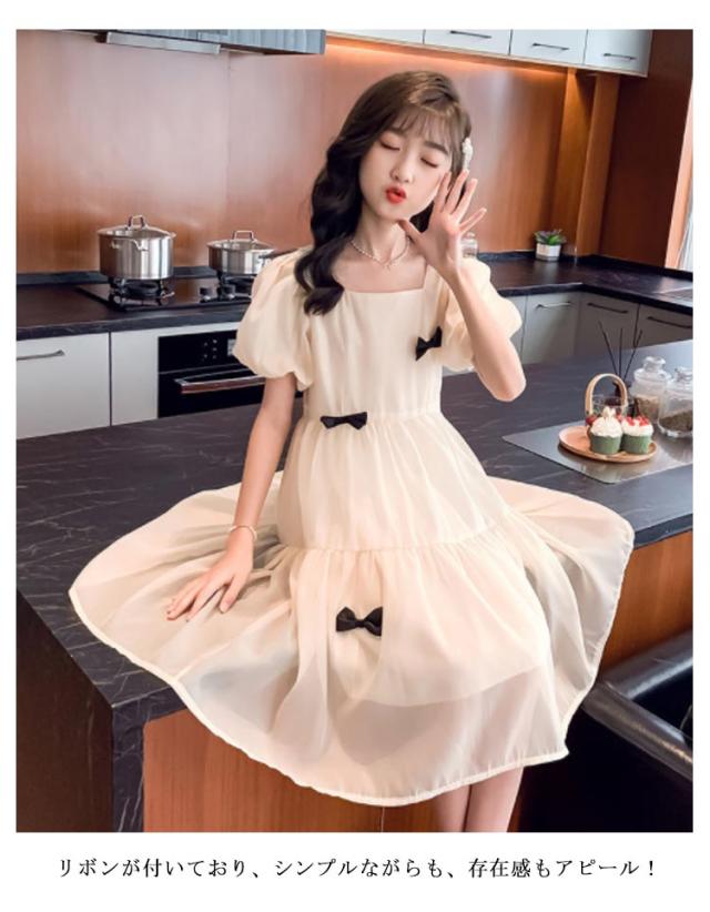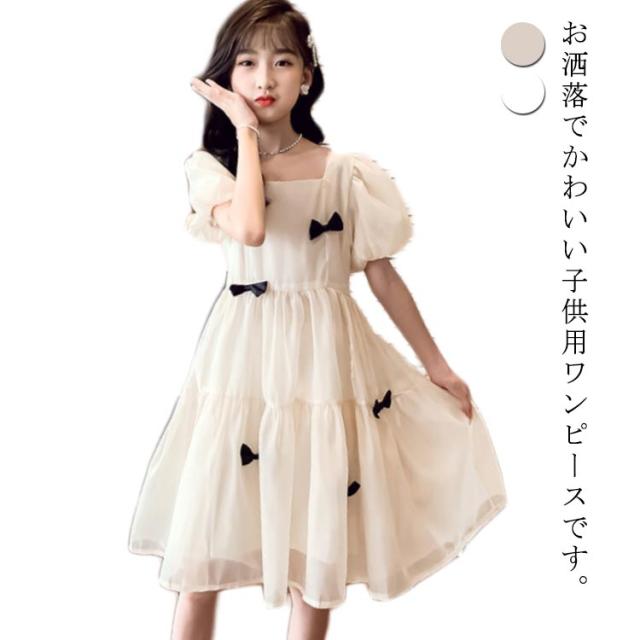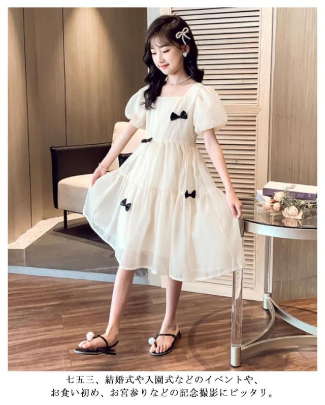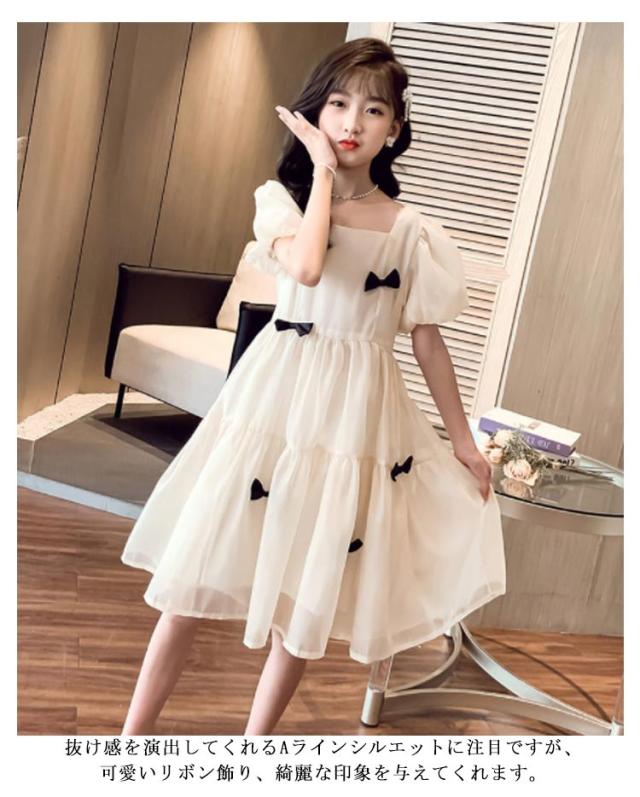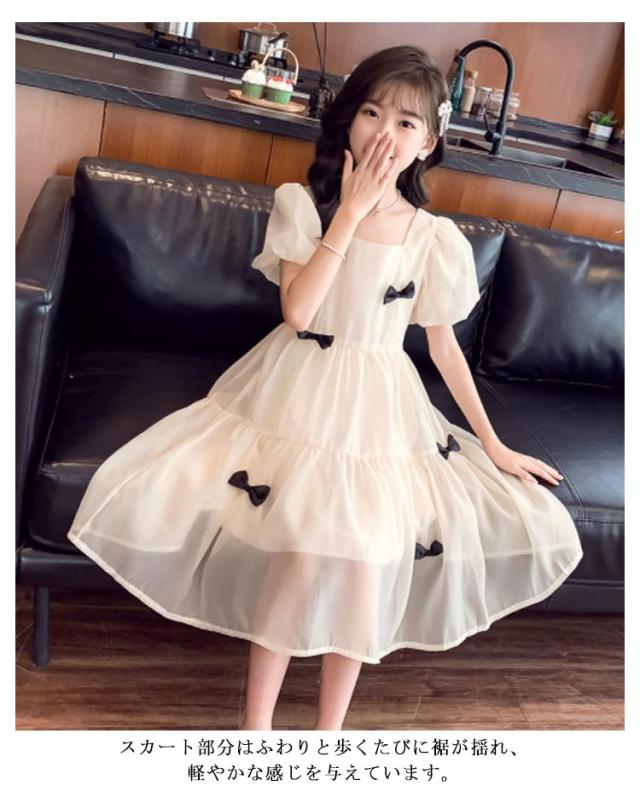 こども ワンピース 半袖 フレアワンピース ワンピ ロング丈ワンピ スクエアネック 子供服 こども服 夏服 体型カバー 女の子 発表会 演出会 パーティ フォーマル お出掛け 海辺 120 130 140 150 160 170