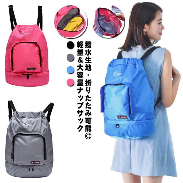 ナップサック スポーツ 巾着リュック 巾着バッグ 撥水加工 リュックサック メンズ レディース 大人 大きめ ジムサック 折り畳み 乾湿分離 ビーチバッグ プールバッグ シューズケース フィットネス ジム ナイロン 防水 大容量 軽量 部活 修学旅行 運動 水泳 サッカー 送料無料