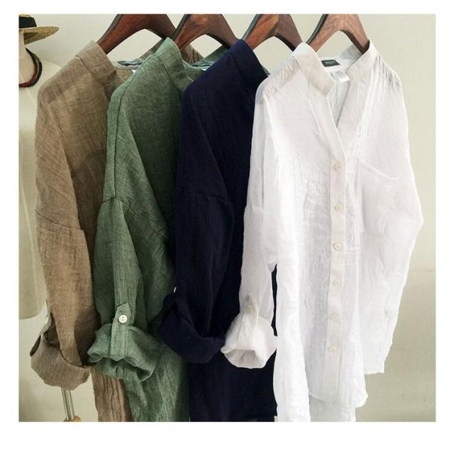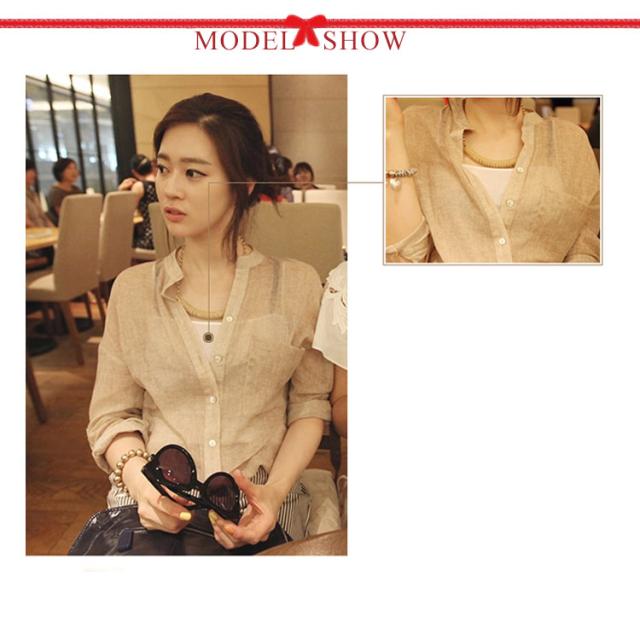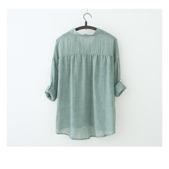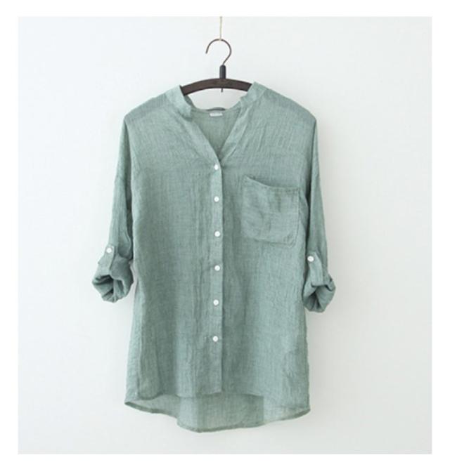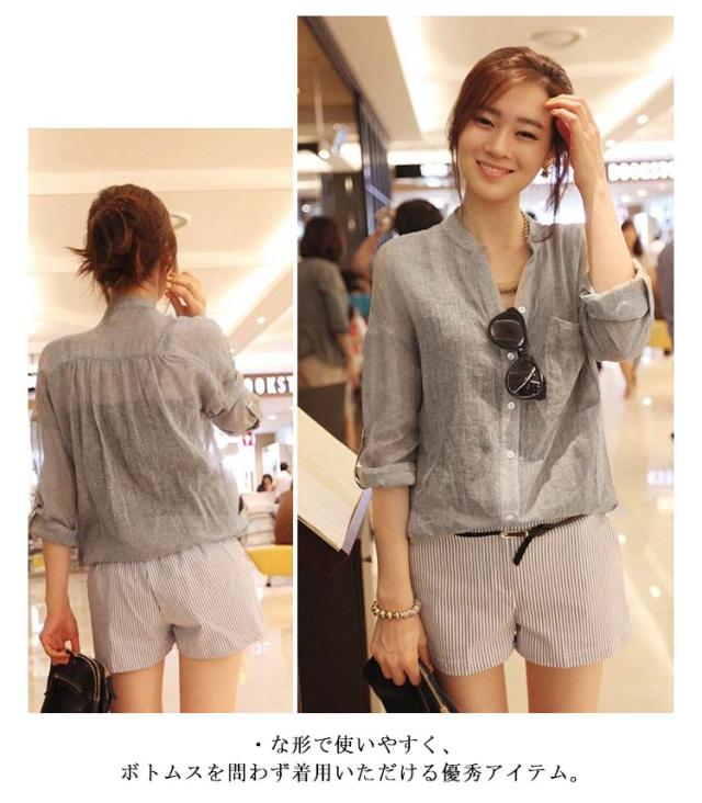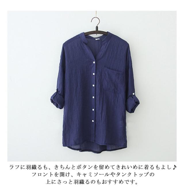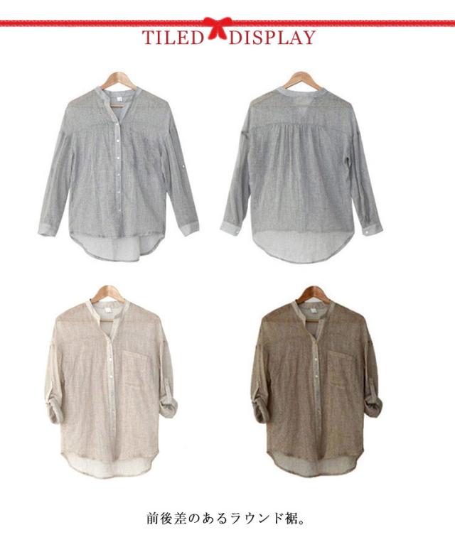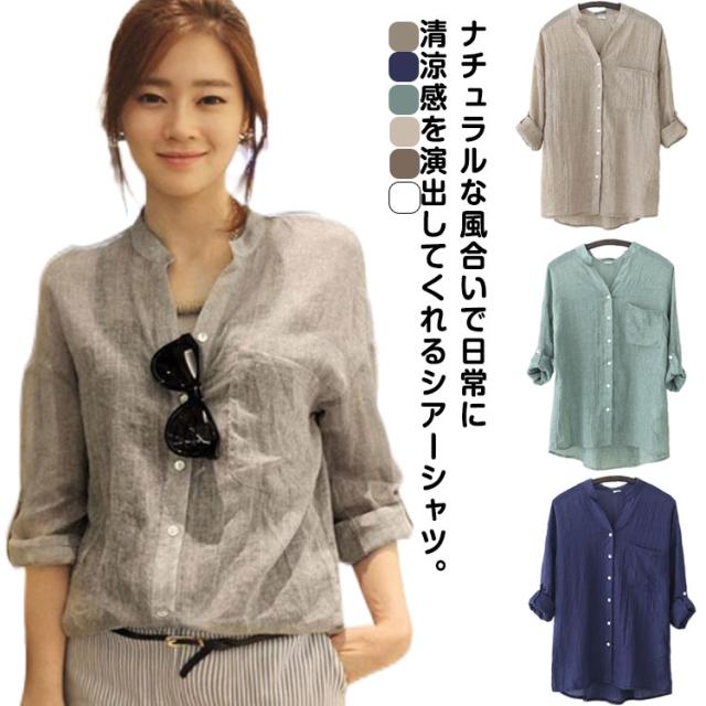 シャツ 綿 麻 シアーシャツ レディース 長袖 ライトアウター ポケット 羽織り ボタン トップス 透け感 前後差 カジュアル 無地 全6色