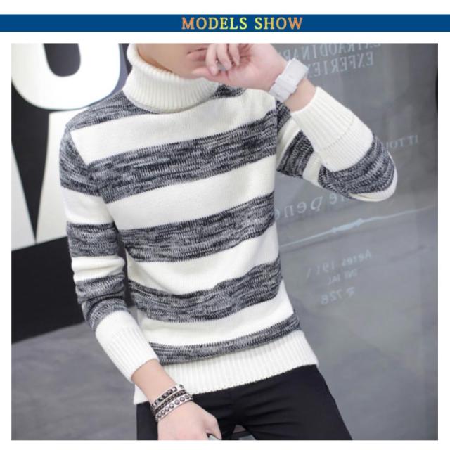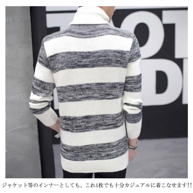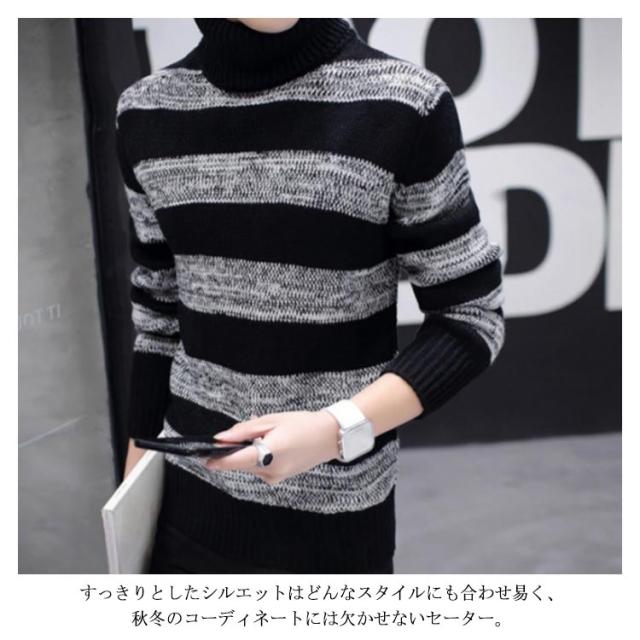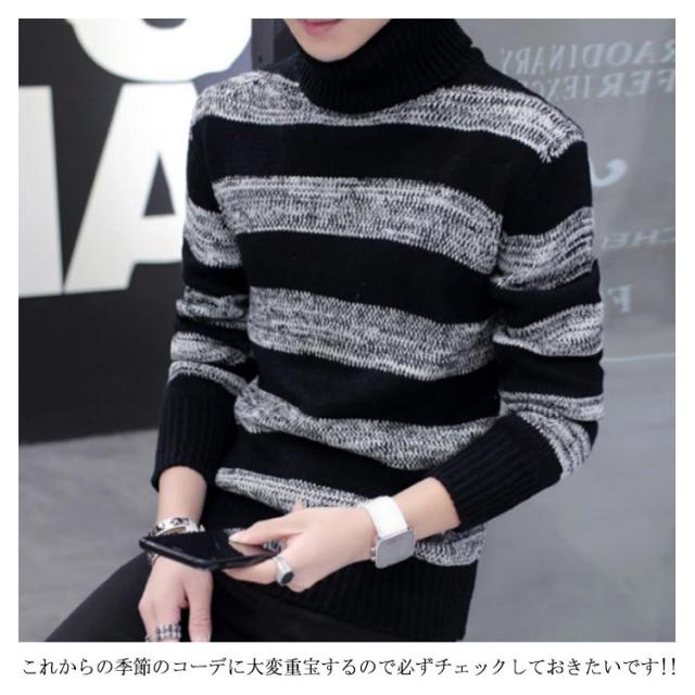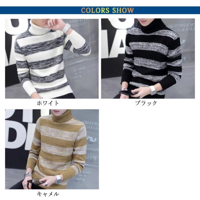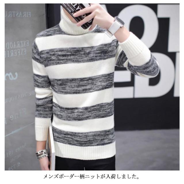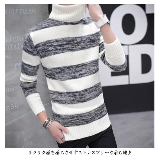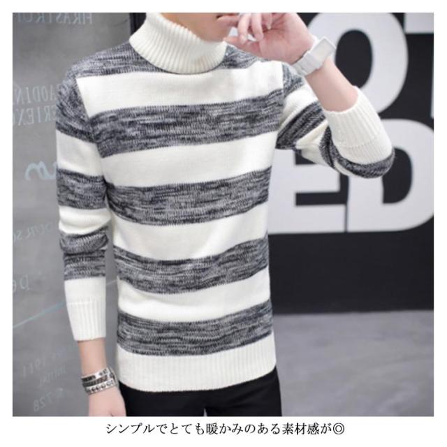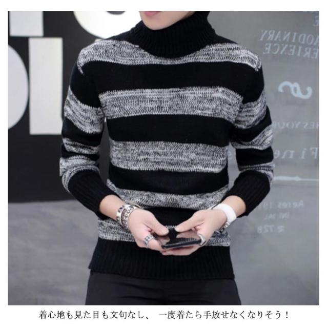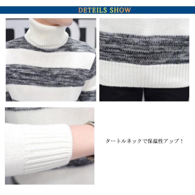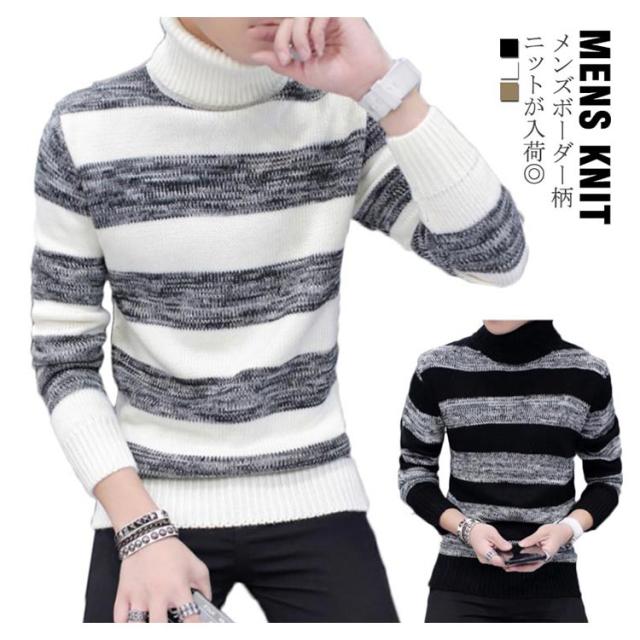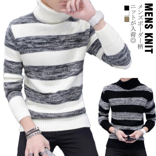 ボーダー柄 ニットセーター メンズ タートルネック ニットセーター ハイネック 防寒 ニット タートルネック 長袖 秋冬 ニット セーター