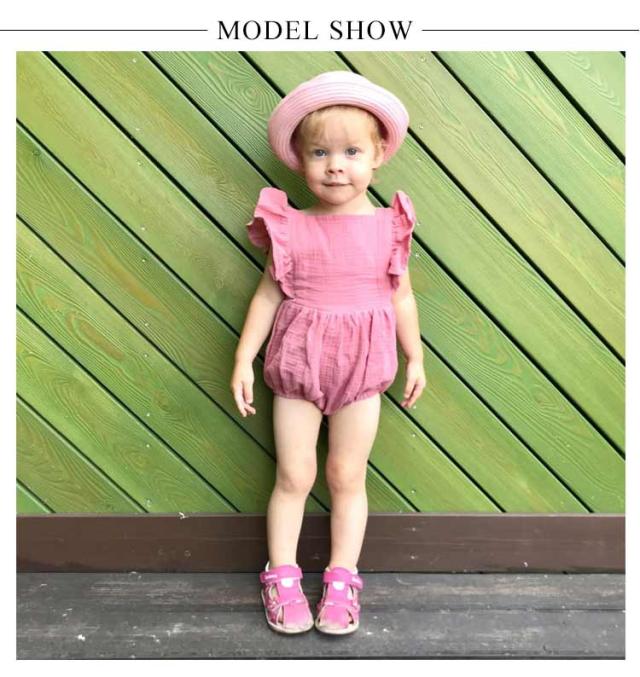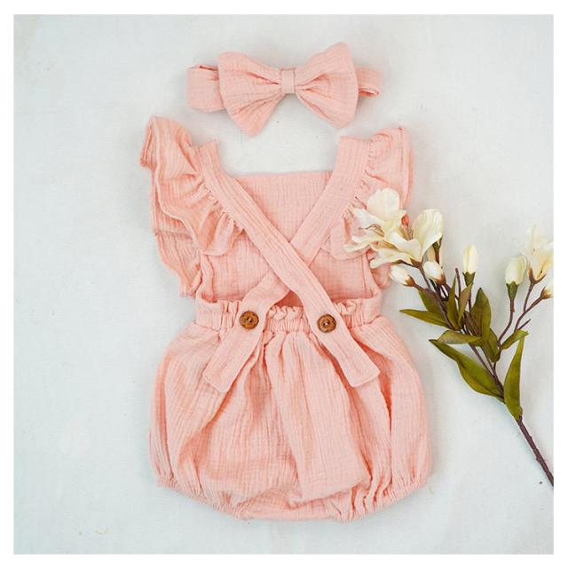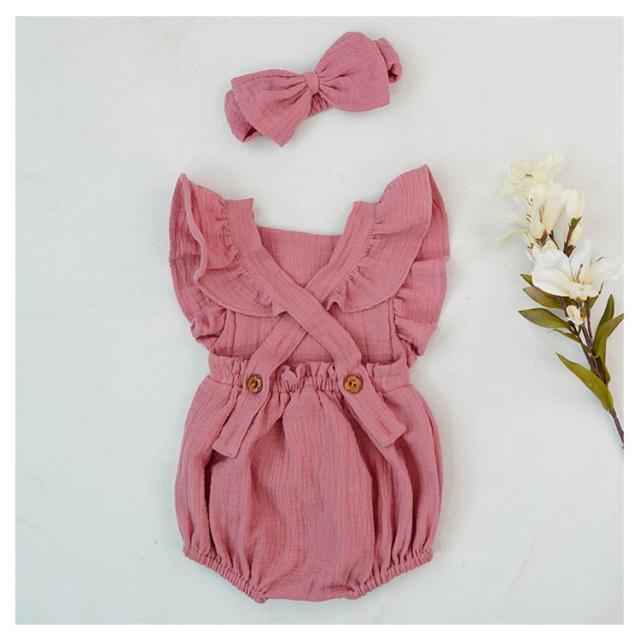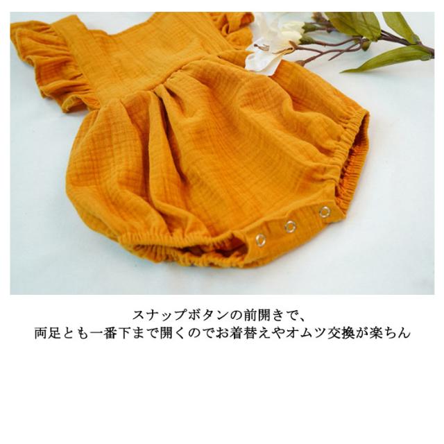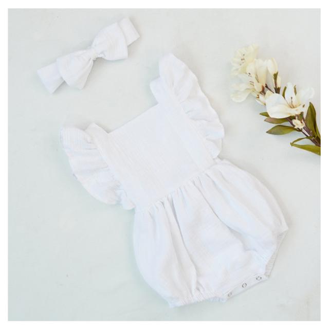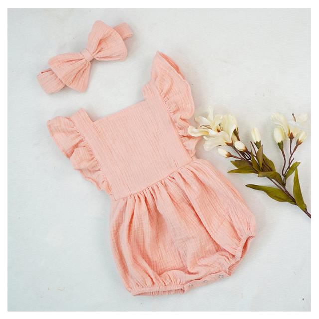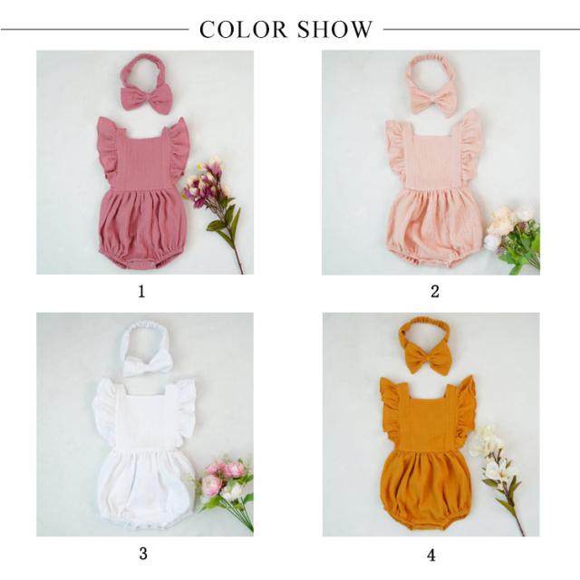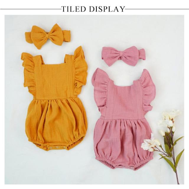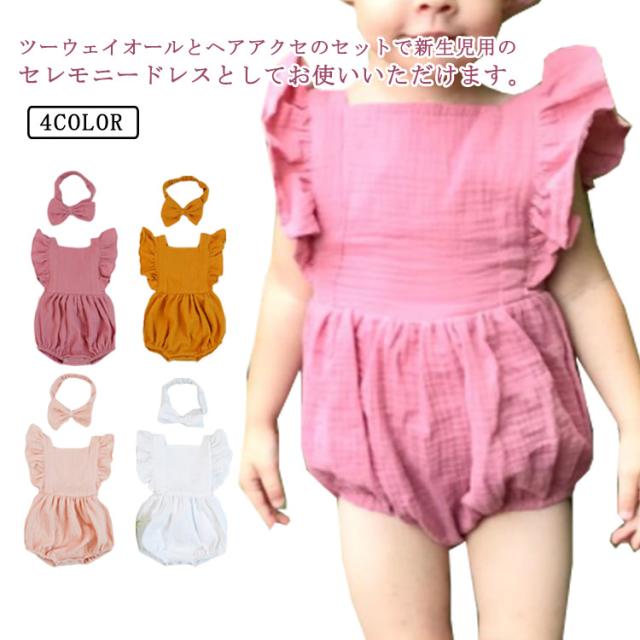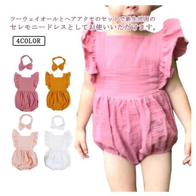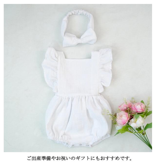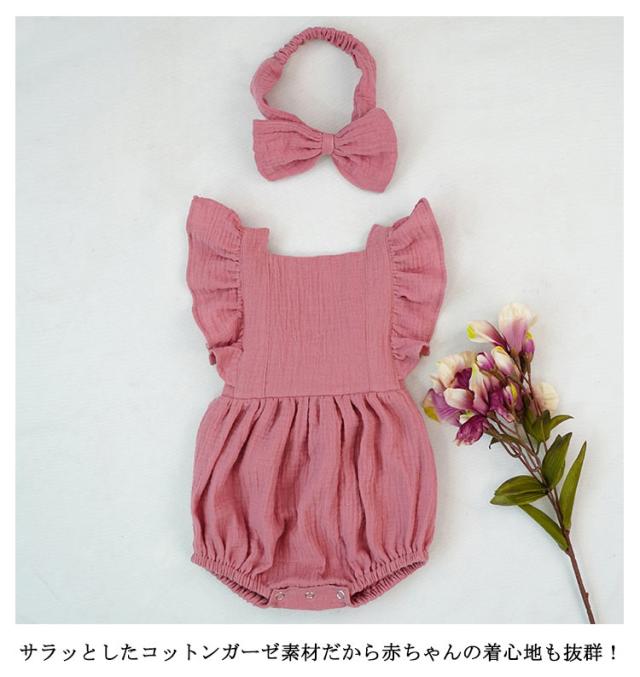 ベビー服 ロンパース カバーオール 送料無料 フリル袖 ロンパース+リボンヘアアクセ 2点セット 着ぐるみ 可愛い あかちゃん コットンガーゼ 綿 柔らかい 出産祝い 夏服 春夏 66 70 80 90