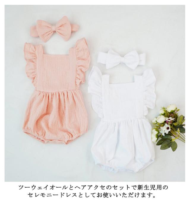 | ツーウェイオールとヘアアクセのセットで新生児用のセレモニードレスとしてお使いいただけます。 お揃いの大きめリボン部分がとてもオシャレ サラッとしたコットンガーゼ素材だから赤ちゃんの着心地も抜群! スナップボタンの前開きで、両足とも一番下まで開くのでお着替えやオムツ交換が楽ちん ご出産準備やお祝いのギフトにもおすすめです。 | |