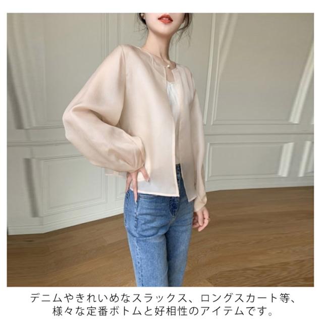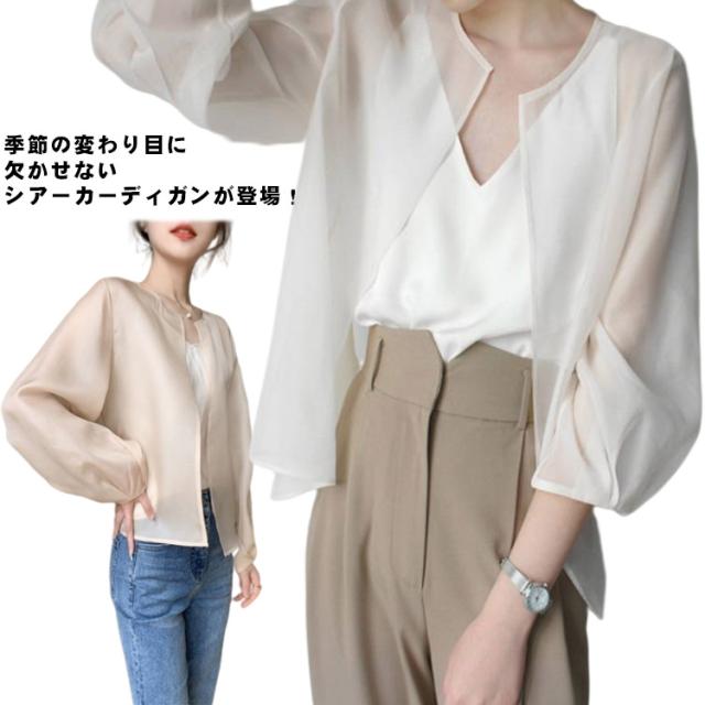 カーディガン レディース シアーカーディガン オーガンジー 透け感 長袖 シアートップス シースルー 薄手 シフォン カーディガン 紫外線対策 UVカット 冷房対策 羽織 ライトアウター ノーカラー シアートップス ゆったり 体型カバー きれいめ カジュアル 通勤 夏 春 送料無料