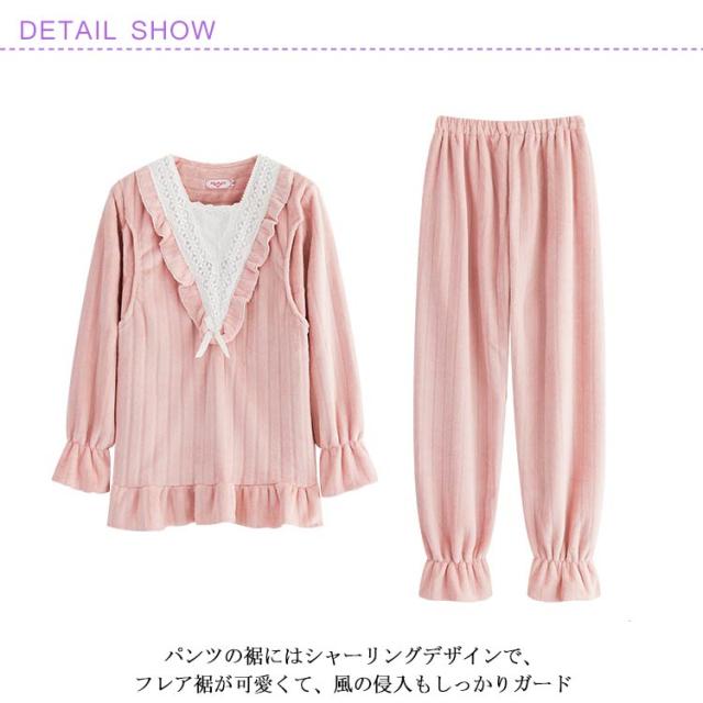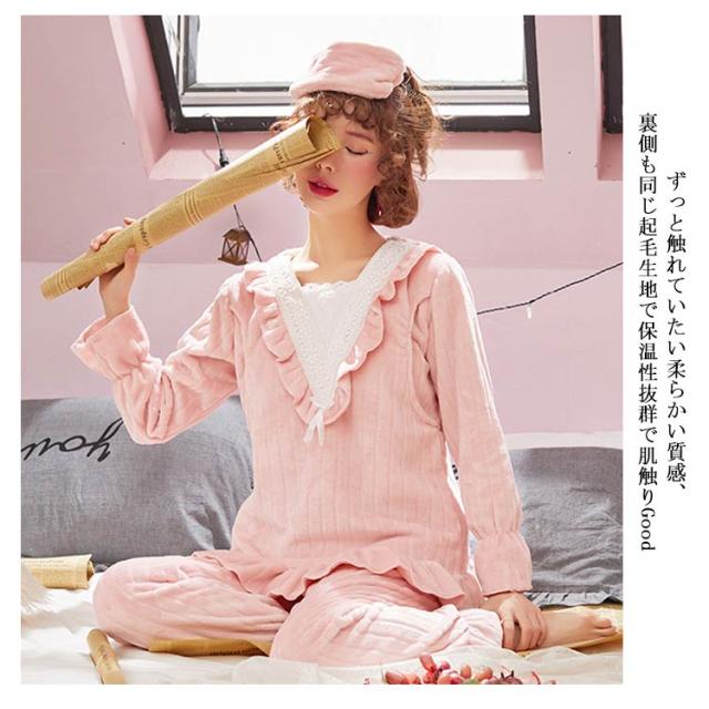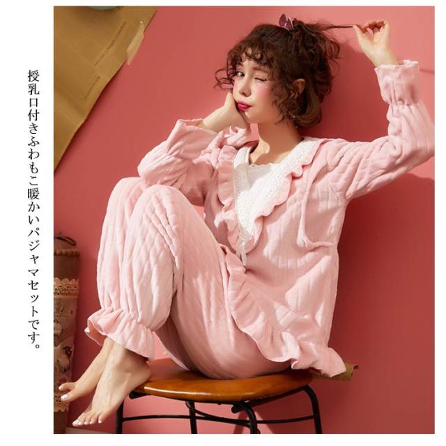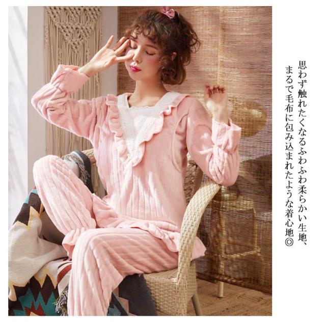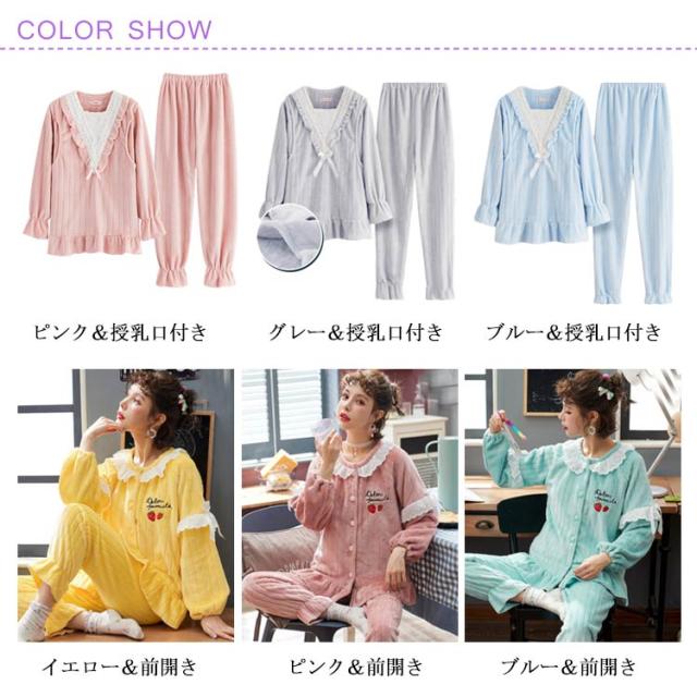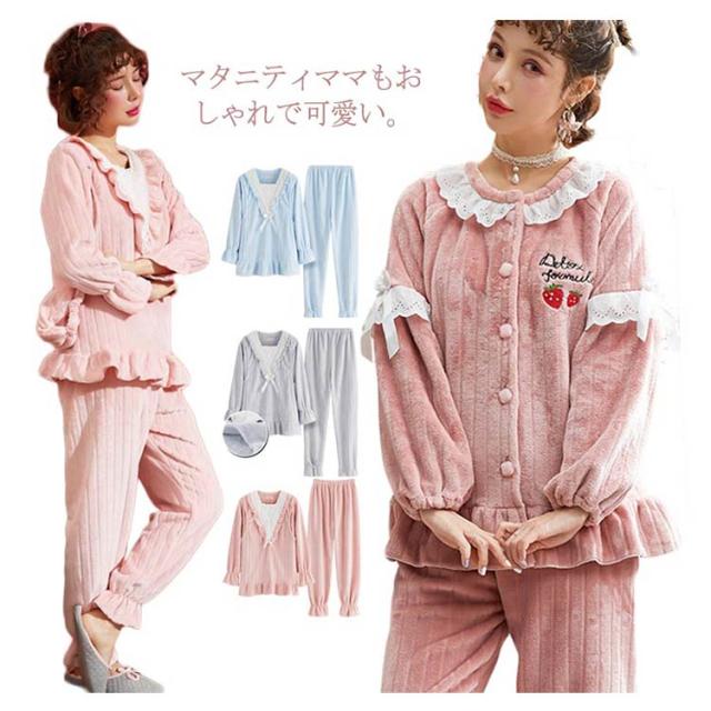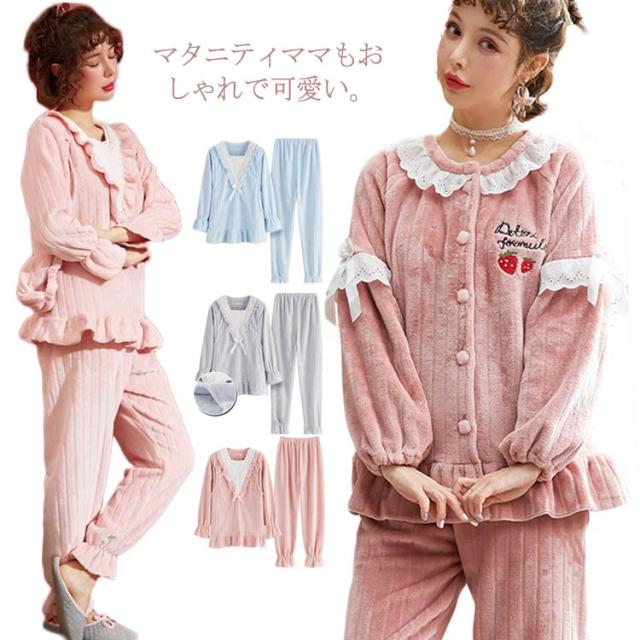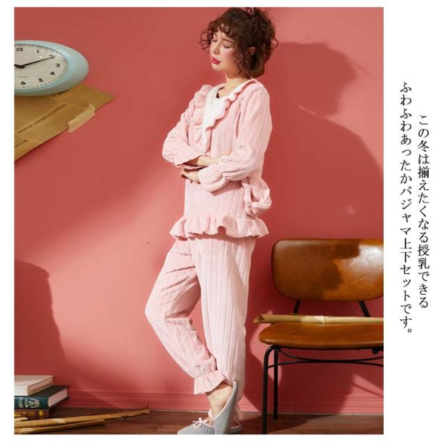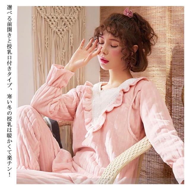もこもこ パジャマ ルームウェア マタニティウェア 授乳服 レディース 授乳口付き ルームウェア 上下セット 秋冬 冬物 もこもこ 姫系 長袖 前開き あったかい ポカポカ 部屋着 やわらか