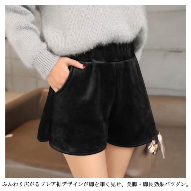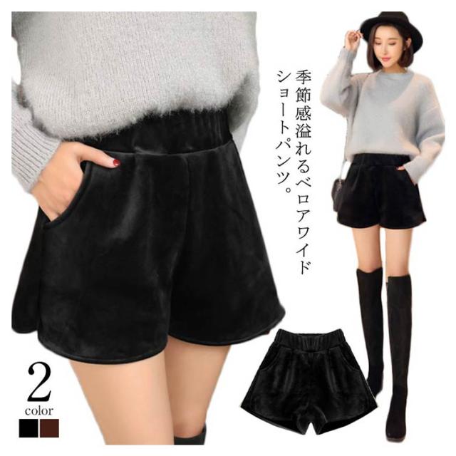 ショートパンツ ベロア ベルベット ワイドパンツ レディース ボトムス ワイドショートパンツ 秋冬 ウエストゴム フレアパンツ 着る毛布 ウェストゴム スリット入り シンプル ベロアパンツ ゆったり 美脚