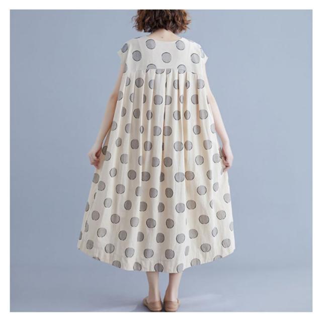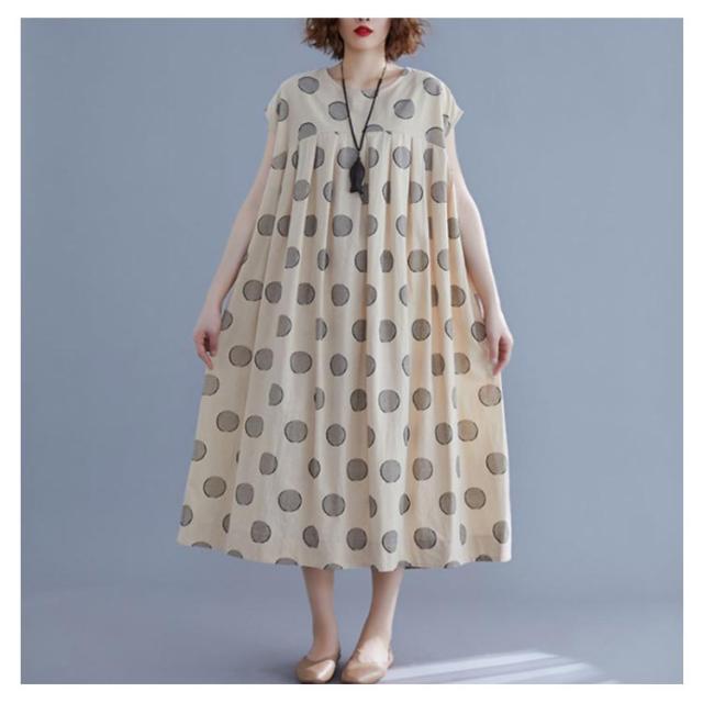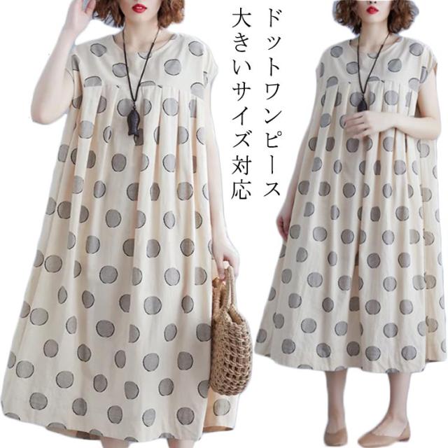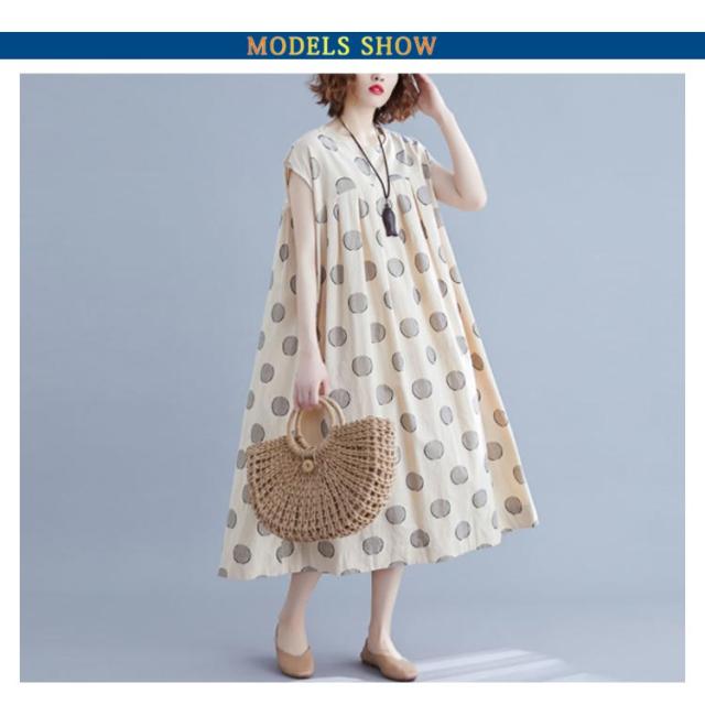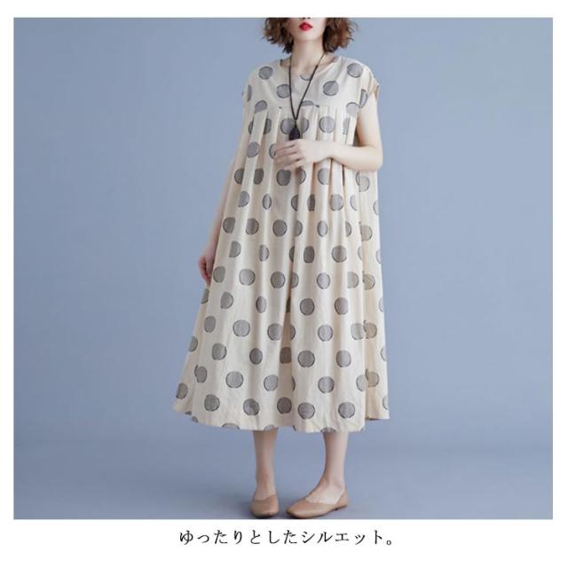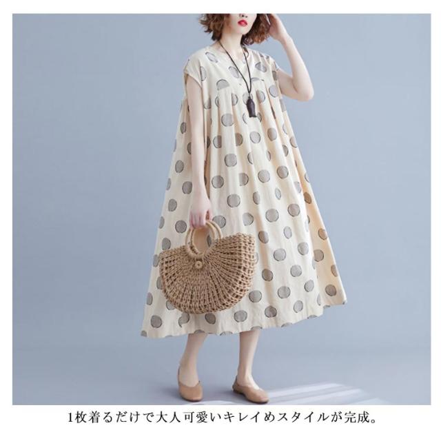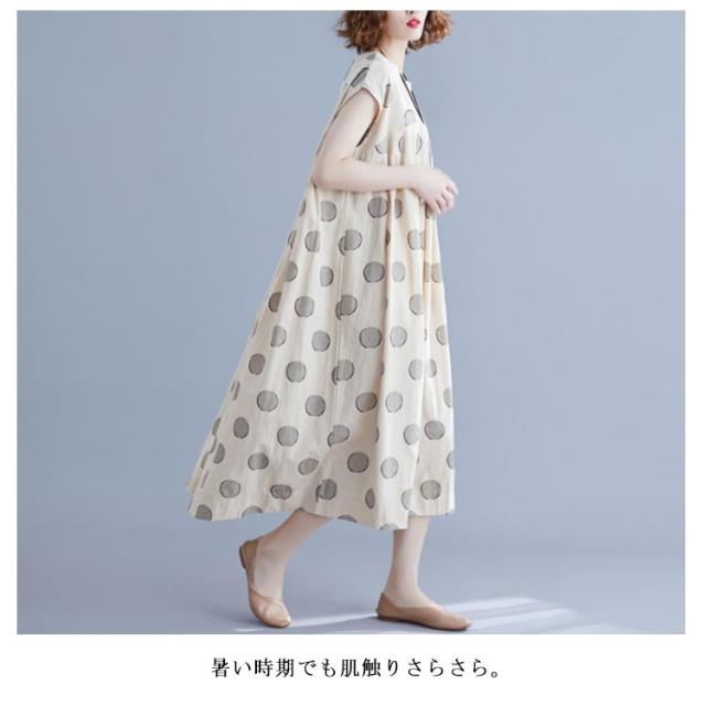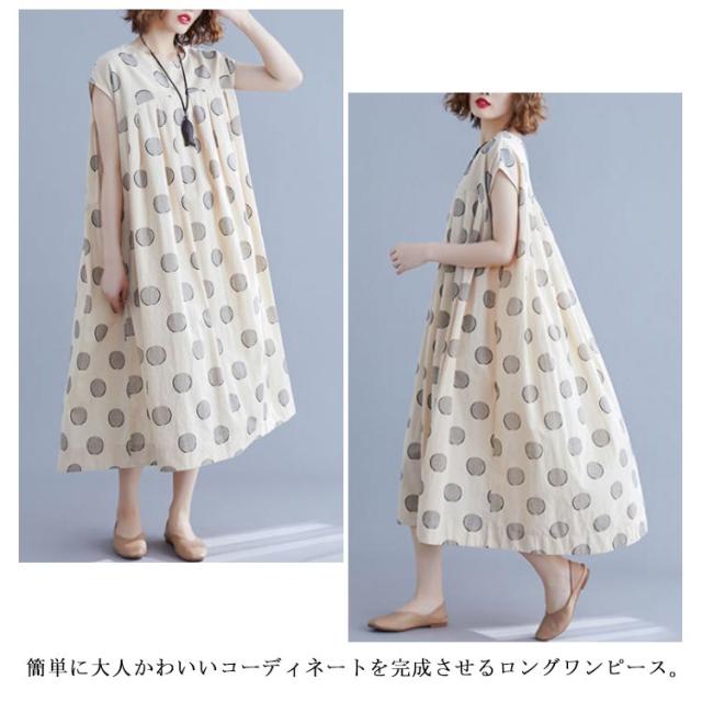 夏ワンピース レディースワンピ 水玉ワンピース Vネック ノースリーブ ロングワンピース ドット マキシ丈 お出かけ 結婚式 二次会 パーティー ゆったり カジュアル 体型カバー 森ガール 送料無料